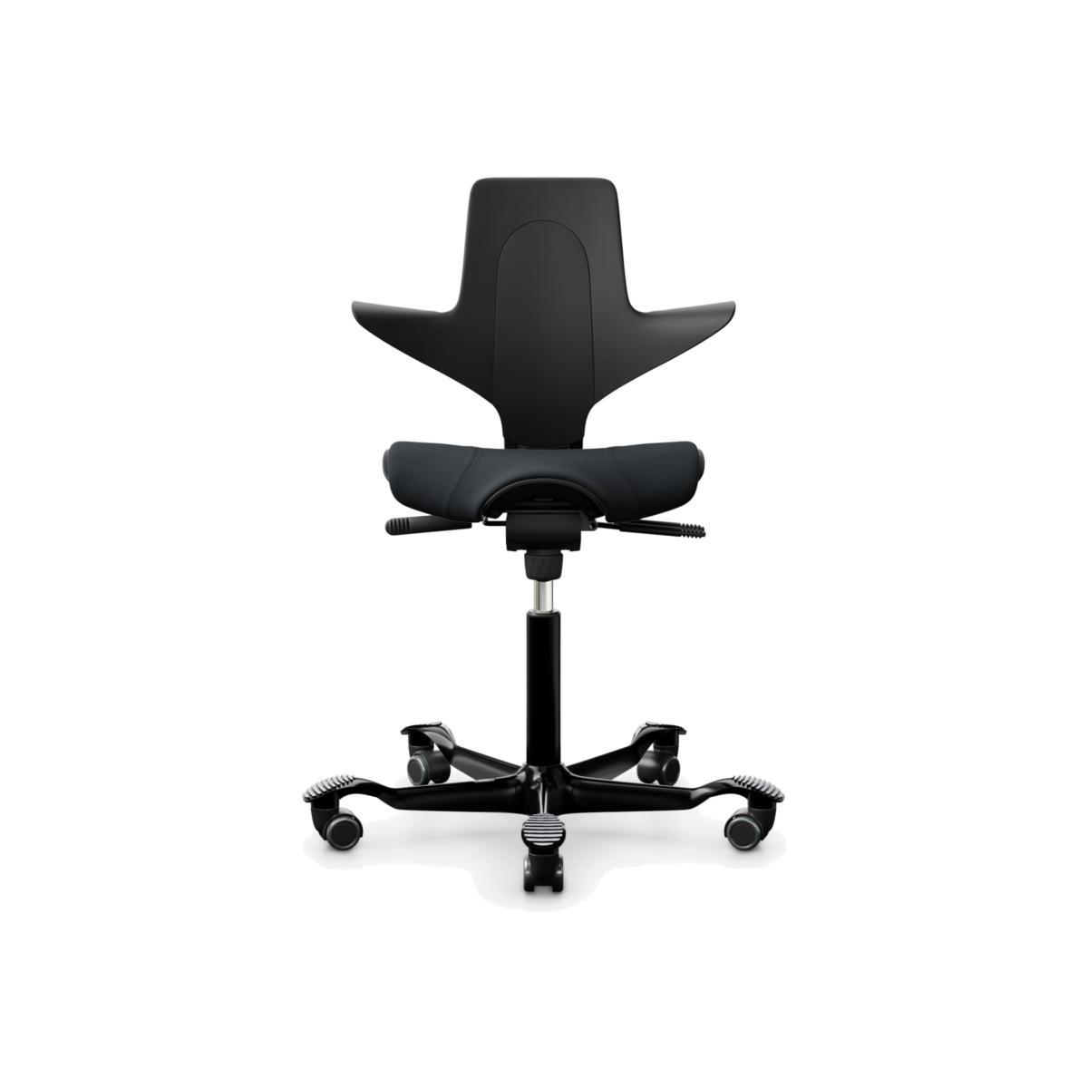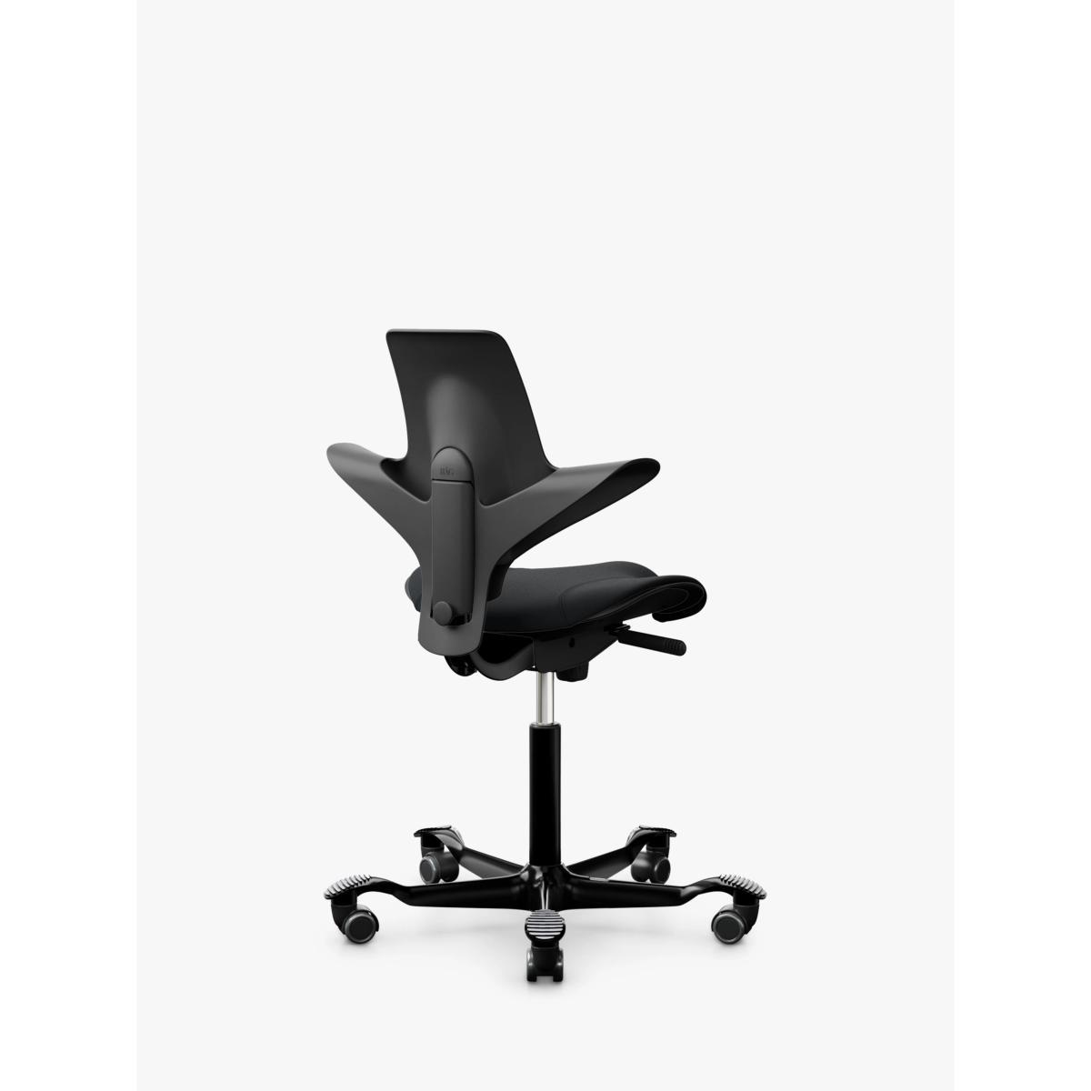With its light, edgy-shaped back and seat, the HÅG Capisco Puls 8020 office chair is an ideal solution for work spaces where you sit for shorter periods of time, like meetings, touch-down areas, home offices and collaboration areas. Part of the HÅG Capisco concept, it's a celebration of innovative, unconventional design, and it will add personality to any space while providing true ergonomic support. Renowned Norwegian designer Peter Opsvik originally created the chair in 1984 in an attempt to overcome stereotypical sitting habits. The result is this distinctive saddle seat, inspired by a horseback rider's dynamic posture. It offers endless ways to sit or half-stand, and encourages you to vary your position throughout the working day for increased energy, creativity and a healthier posture. Plus, it's one of the most responsibly manufactured office chairs. 95% of the polypropylene plastic used is recycled, mainly from post-consumer waste plastic and it's not made with glue or any other harmful substances. Customisable adjustments for an active sitting experience With a flexible sit-stand seat and height range, it's easy to switch between sitting, standing and perching Varying your position during the working day will help you to feel more energised and focused on your work. It also helps to reduce fatigue that is often associated with standing desks Adjust the seat depth forwards and backwards to get backrest support for a resting position Adjust the backrest height for optimal comfort and elbow support The backrest tilts and can be locked into a position. Lock it in a neutral position when you sit sideways or backwards and unlock it for a natural rocking motion when sitting normally It's made with a ridged foot support that provides grip and helps you to vary the position of your feet Unique saddle seat The saddle seat enables a balanced posture and greater freedom of movement when sitting down to work With this posture, the lumbar curve is preserved, the hip joint angles are open and muscles are well-balanced and relaxed. This helps to eliminate the strain on your body which is often associated with conventional sitting positions The seat offers the ability to move without needing to leave your work station, making sitting active and adding energy and flow to your day Minimalist design with the environment in mind The number of components and types of materials used to create this chair has been reduced to a minimum, making it a front-runner in eco-design The chair can be dis-assembled so that the various materials can be separated from each other to facilitate recycling This office chair was the first in the world to be certified with the Nordic Swan Ecolabel in 2010. In 2015, it received the EPRO award for 'Best Recycled Plastic Product' in Europe Iconic, Scandinavian design With its elegant curves and smooth performance, this distinctive chair will stand out in your work space Its flexibility means it will never look out of place, whether it's in the office, your home office or a collaborative meeting room Its clever shape allows you to twist and turn to face your peers, adding personality and energy to your work place The base is available in a choice of painted finishes Want to see it first? You may want to see and get a feel for the furniture in one of our shops before ordering. We'll be able to tell you where the range you'd like to view is on display.