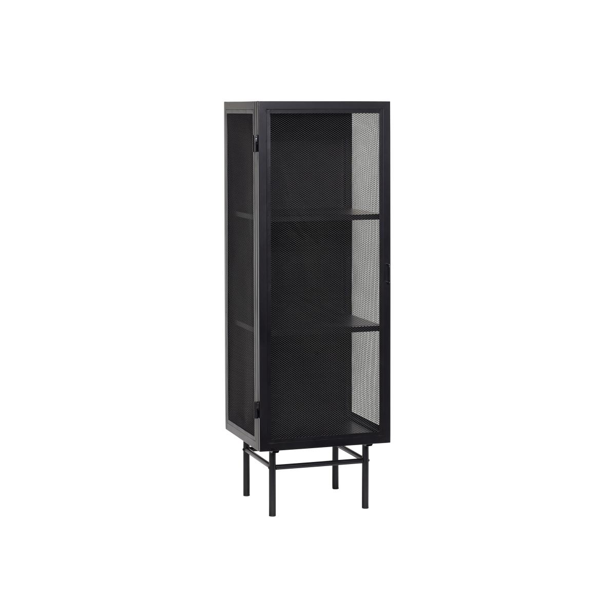 I love this black metal cabinet for its sleek, industrial feel that can instantly add a modern edge to any space. Its tall, narrow silhouette makes it ideal for smaller rooms or as a statement piece in open-plan areas. It works particularly well in contemporary, urban, or minimalist interiors, but can also add an unexpected touch to more eclectic schemes. Practical styling tips include using it to showcase glassware, books, or decorative objects behind its glass doors, while keeping clutter hidden in discreet storage compartments. Pair it with a mix of metallic accents or matte finishes to maintain a cohesive look, and consider placing it on a rug or platform to highlight its sense of loft-inspired style.
