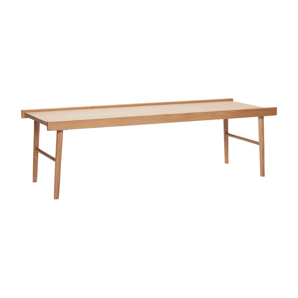 I love this bench-style coffee table because of its clean, minimal design and warm oak finish, which adds a touch of natural elegance to various interiors. It works particularly well in Scandinavian-inspired or contemporary living spaces, but can also complement more earthy, rustic styles. Practical styling tips include layering with a few stacks of books, a cosy throw, or decorative trays to create visual interest. Its elongated shape makes it perfect for laid-back gatherings or as a versatile surface for everyday essentials, while its understated design ensures it complements rather than overwhelms a room. This piece is ideal for adding a warm, inviting focal point that can be easily styled up or down depending on your mood or season.