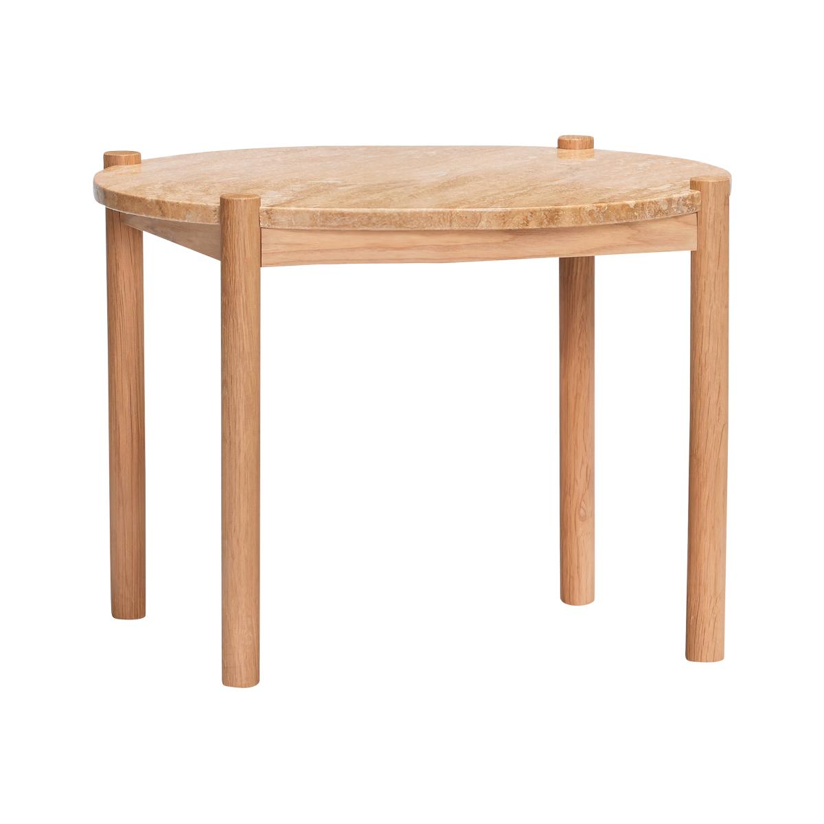 The 'Trava' coffee table from Hübsch is made of FSC-certified oak and travertine, which provides a sophisticated feel. Its natural color easily blends into any interior style. The durable design with a travertine top combined with oak makes it a beautiful addition to the room. Perfect for enhancing the charm of coffee time and creating a cozy atmosphere. Available in two different variants.