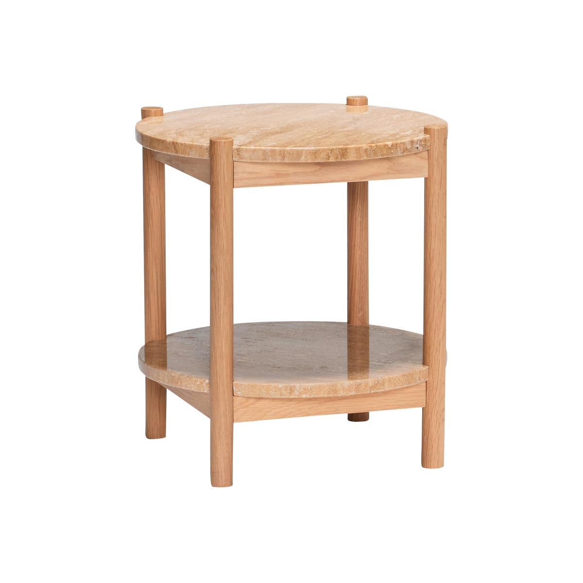 I’m a big fan of the Trava side table for its clean lines and natural textures - the combination of oak and travertine brings warmth without overwhelming a space. It works particularly well in Scandi-inspired or contemporary living rooms and bedrooms, where its simple silhouette complements both muted and bolder colour schemes. Styling tip: use the lower shelf for a small stack of coffee-table books or a woven basket, then top with a slim-base lamp or a single ceramic vase to keep the look uncluttered. Its 45cm diameter means it easily slots next to a sofa or armchair without taking up too much floor space.
