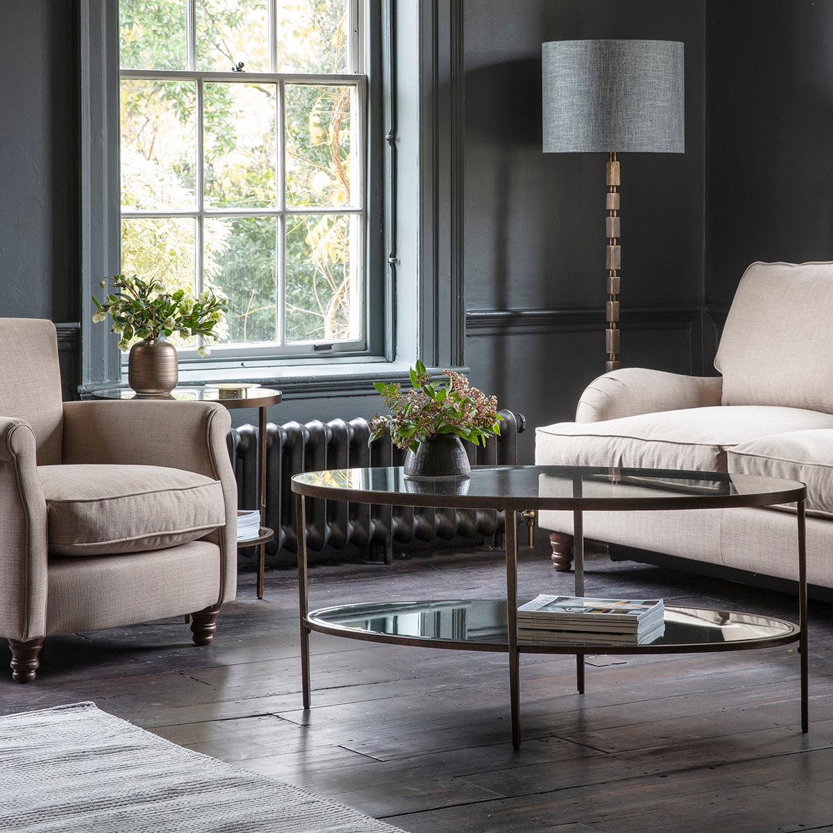 I love this oval coffee table for its sleek, contemporary design and its warm bronze finish, which adds a touch of sophistication to any living space. It's versatile enough to work well in both modern and eclectic interiors, especially where metallic accents are a feature. The shape is great for creating a softer, more inviting layout, and it provides handy surface area without overwhelming the room. Practical styling tips include layering with a couple of decorative trays or bowls for organisation, placing a small plant or candle on top to add personality, and keeping the lower shelf clear for magazines or books to maintain a tidy look. Its size also makes it ideal for smaller lounges, offering functionality without dominating the space.
