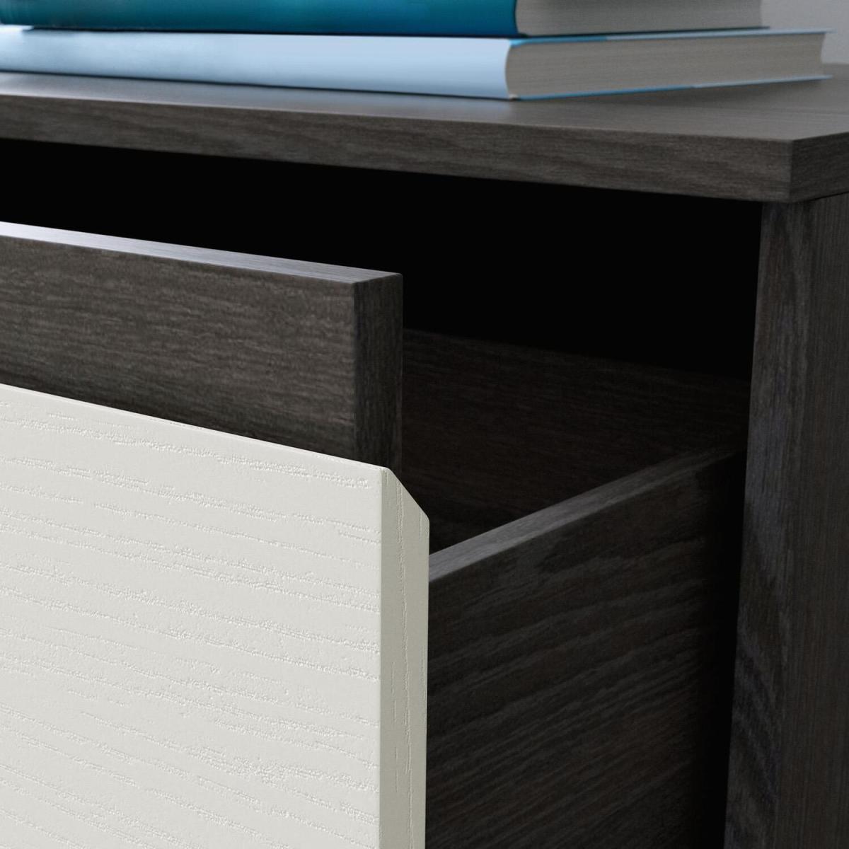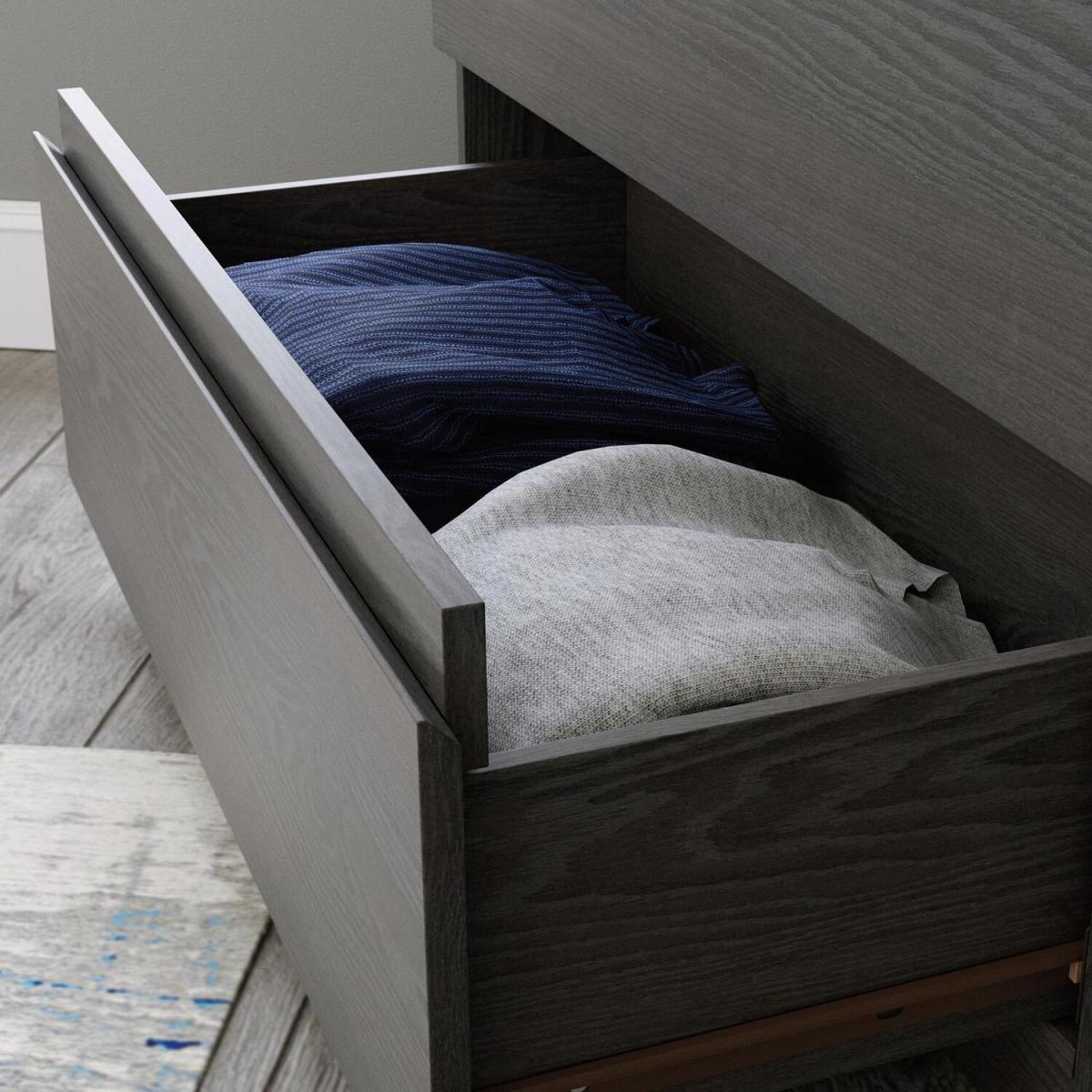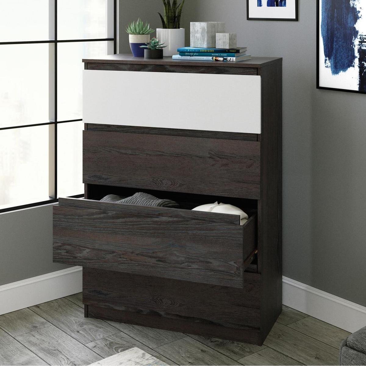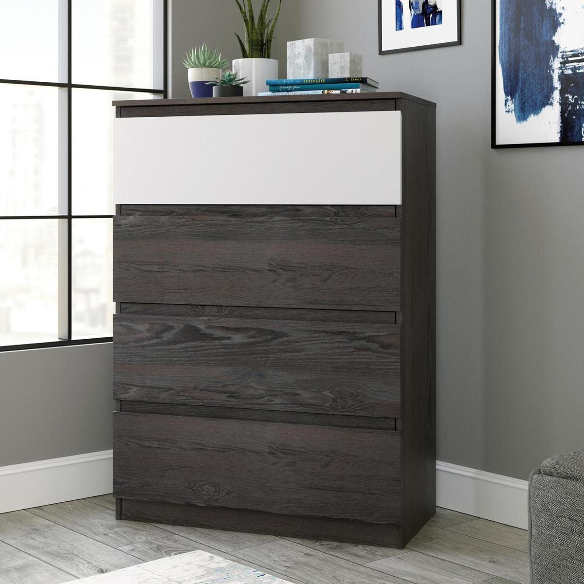Teknik Office Hudson Four Drawer Chest in Charcoal Ash Finish and Pearl Oak accents with the spacious top surface, 4 large drawers with metal runners and safety stops.