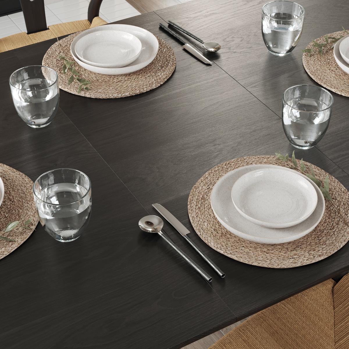I’m a fan of this Hudson-style extendable dining table for its crisp, modern silhouette and sturdy oak black finish. It slots effortlessly into contemporary, Scandi-inspired or lightly industrial spaces, and the extension leaf means you can easily adapt from everyday family meals to larger gatherings without compromising on style. For a cohesive look, pair it with woven or cane-seated chairs in natural tones to soften the dark wood, and layer on a neutral runner or muted placemats. Add a simple pendant light above and finish with minimal stoneware or brass accessories so the table remains the focal point.