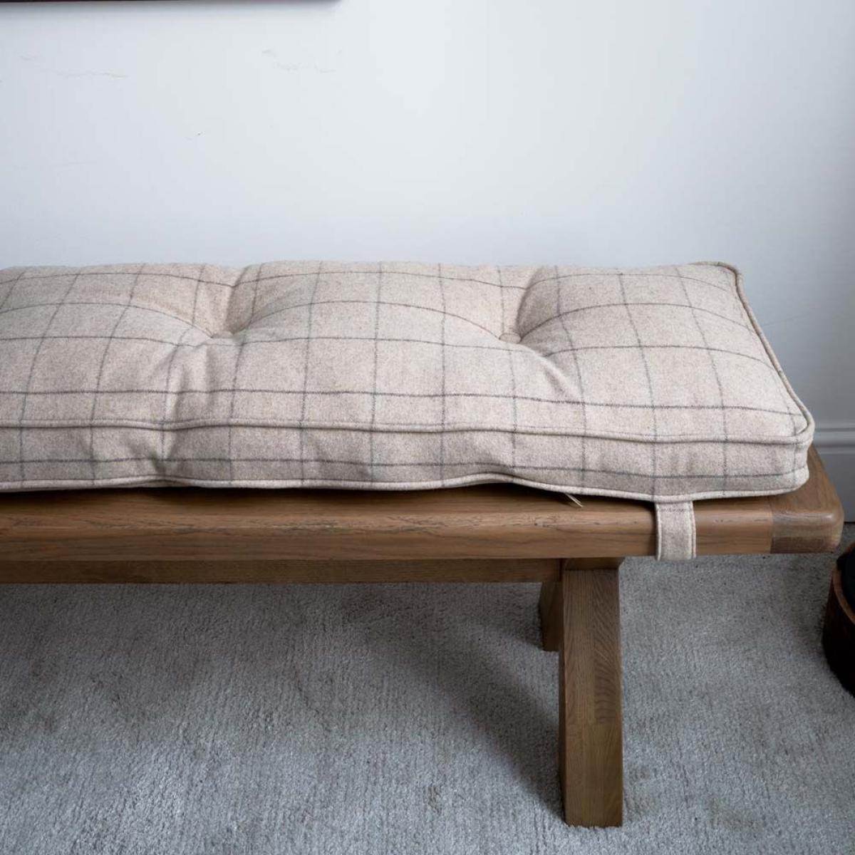 I love this bench cushion for its versatile, understated style and durable check fabric that adds a touch of texture without overwhelming a space. It works well in both contemporary and rustic interiors, especially in hallways, at the foot of a bed, or in a cosy reading nook. Practical styling tips include pairing it with neutral-toned furniture for a calm look, or using colourful throws and cushions to introduce pattern and colour. Its natural check pattern makes it easy to coordinate with other textiles and wood finishes, offering an effortless way to add comfort and style to any bench seat.