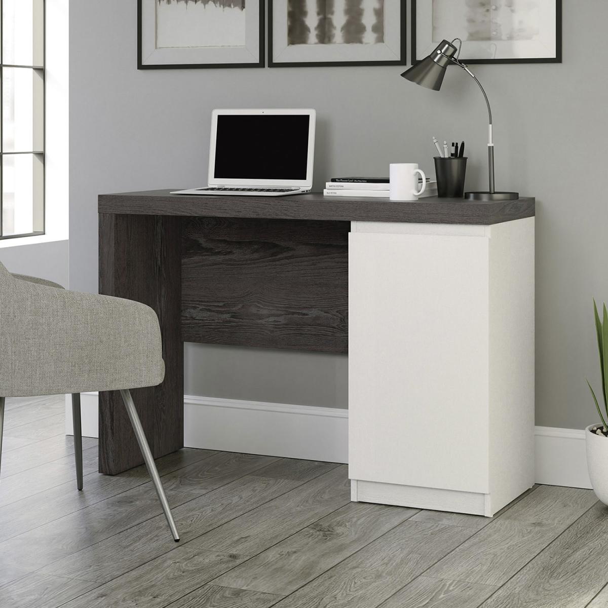 I’m a fan of this chunky desk for its clean lines and mix of dark wood-effect and white finishes, which makes it a versatile choice in both Scandi-inspired and contemporary schemes. Its compact footprint is ideal for a spare room, bedroom corner or home office with limited space, while the built-in cupboard keeps clutter out of sight. For styling, keep the desktop clear with discreet cable management and perch a slim-profile task lamp in one corner. Balance the look with a small plant or a stack of neutrally bound books and a simple ceramic pot. Above the desk, a framed print or pin-board adds personality without overwhelming the space, and pairing it with a minimalist chair in light wood or metal will complete the setup.