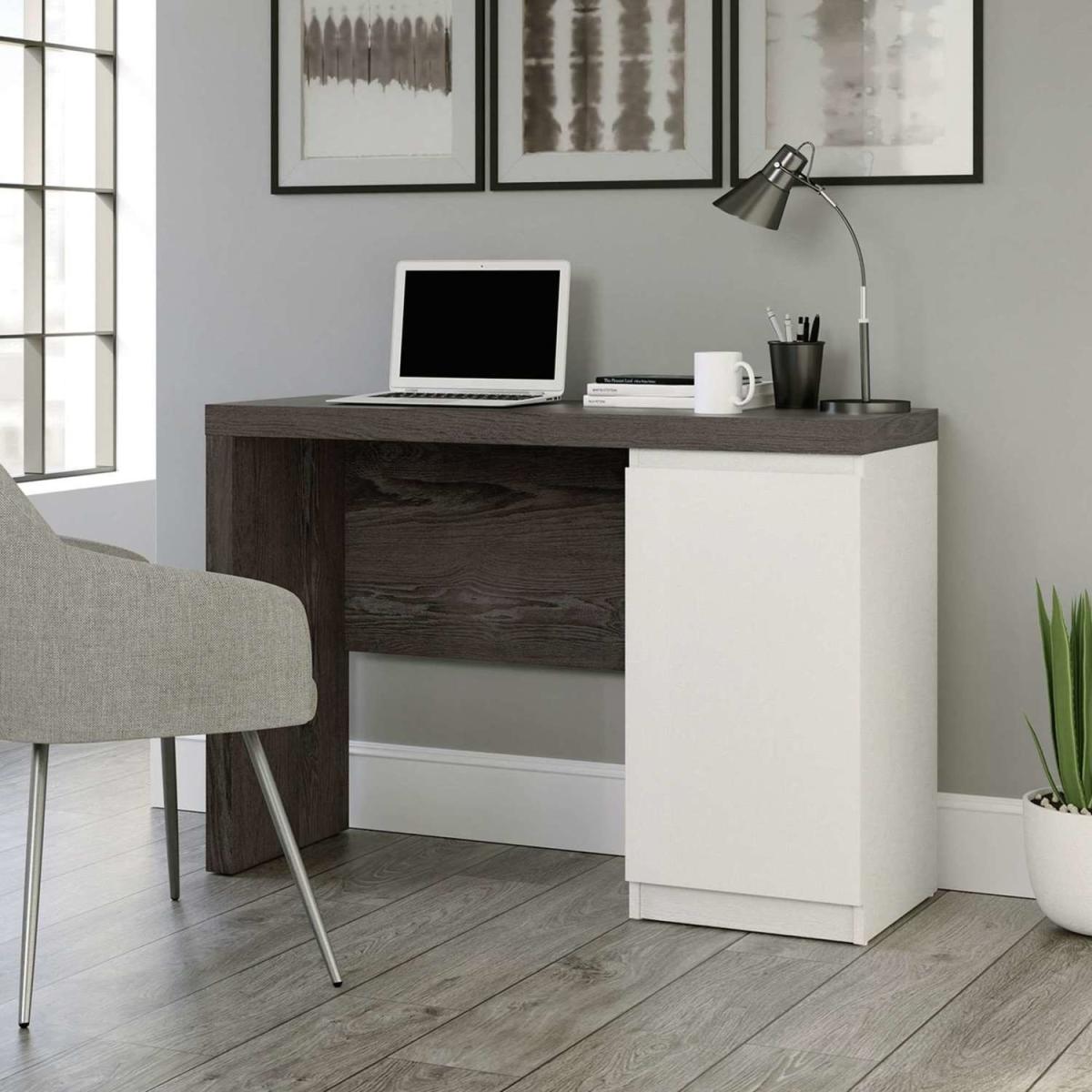 Update your work space with this Hudson Chunky Desk in Charcoal Ash and Pearl Oak accents. It has a sharp, minimal design, perfect for your home office.