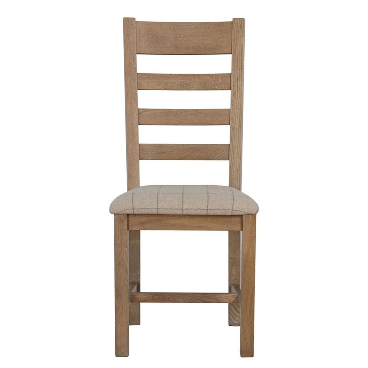 The Hudson Ladder Back Dining Chair is a very comfortable dining chair with a soft seat and supportive timber back. The legs and back are stained wood, and work perfectly with the natural check fabric.