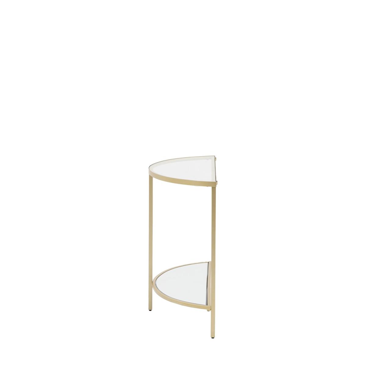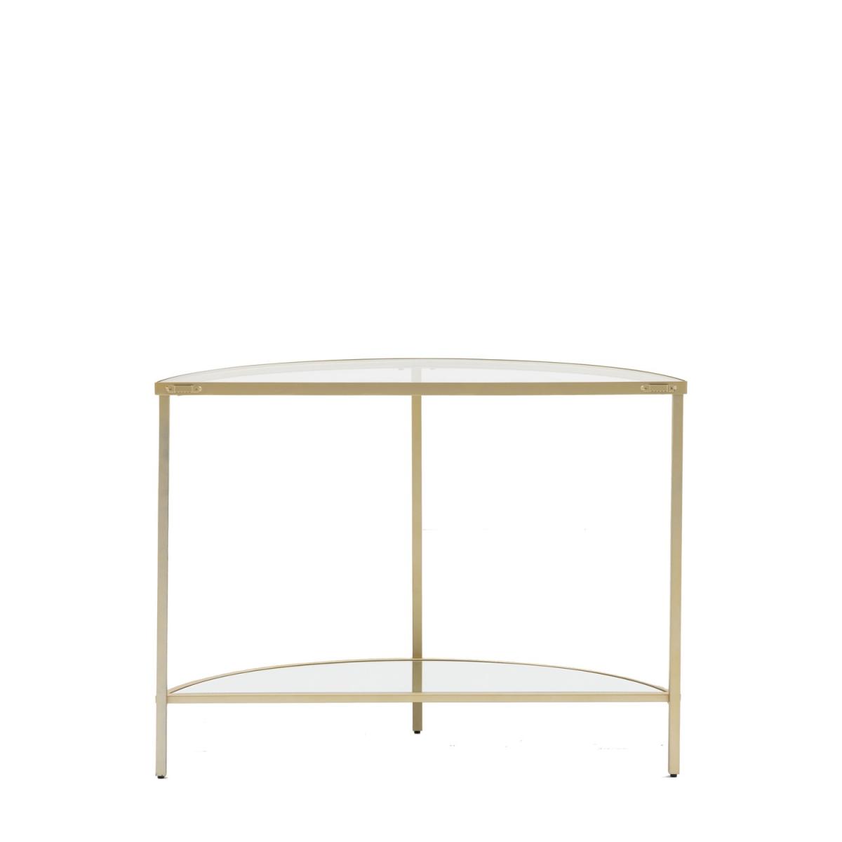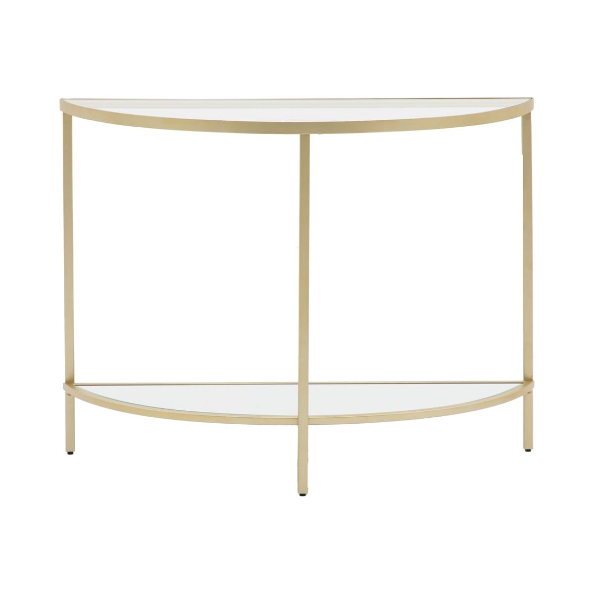 I often reach for this champagne console because its slim metal frame and glass shelves keep hallways feeling open while adding a hint of warmth. It works well in modern, minimal and mid-century-inspired interiors, pairing neatly with a large wall mirror or statement artwork overhead. Style tip: position a sculptural table lamp alongside a stack of coffee-table books and a small vase on the top shelf, then use the lower shelf for a woven basket or neatly folded throws. Keep accessories varied in height and texture to maintain balance and avoid clutter.