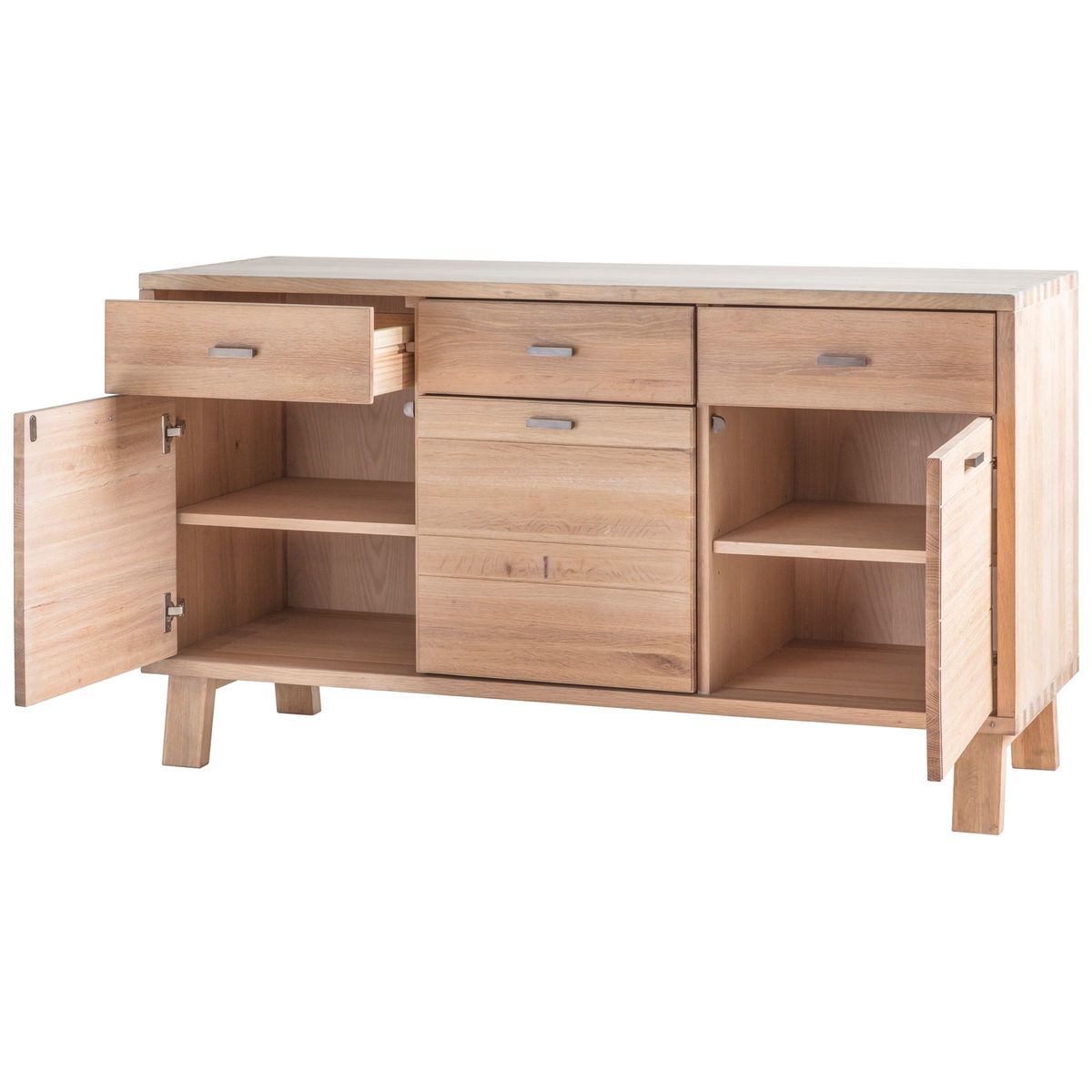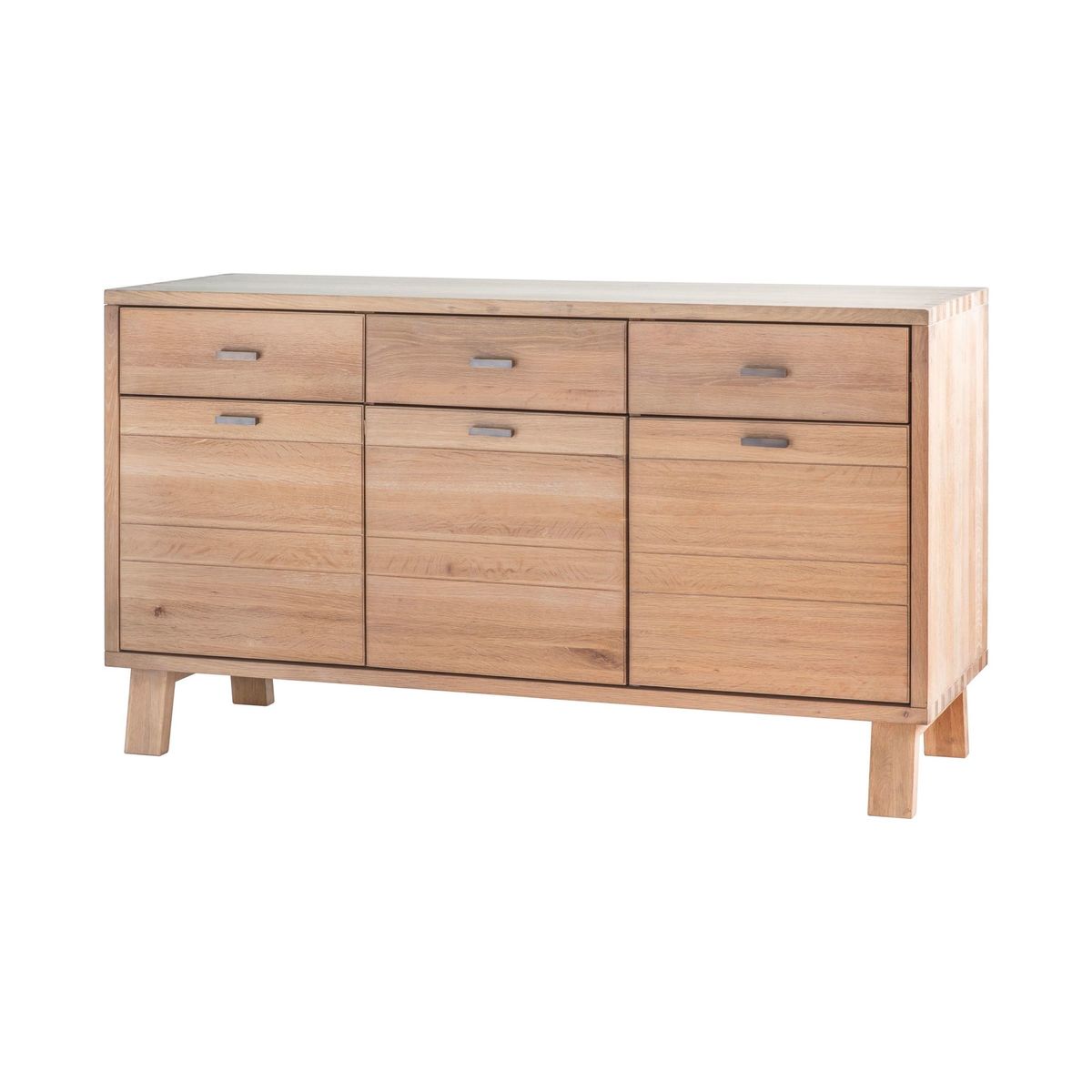Honest and solid, the Kielder furniture collection is named after a unique British forest. This unfailing range is crafted from beautifully mellow solid Oak, using the planked and jointed build method to create defined lines in a contemporary and fresh design. The sideboard features plenty of storage, with three drawers and three cupboards, each with its own shelf within. Its stunning, natural look offers the perfect foundation to display decorative lighting and accessories to create a focal point in a hallway or living space. Please note: not all our ranges are on display in our shops. For more information, please speak to a furniture Partner in store, or call 03452 661805 and we can tell you where the range you'd like to view is on display. 0% APR Representative: this product is eligible for Interest Free Credit, available when you spend £1000 or more on selected home products. Call 03456 065019, or visit our shops. Terms and conditions apply: find out more