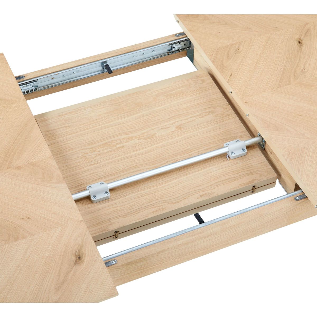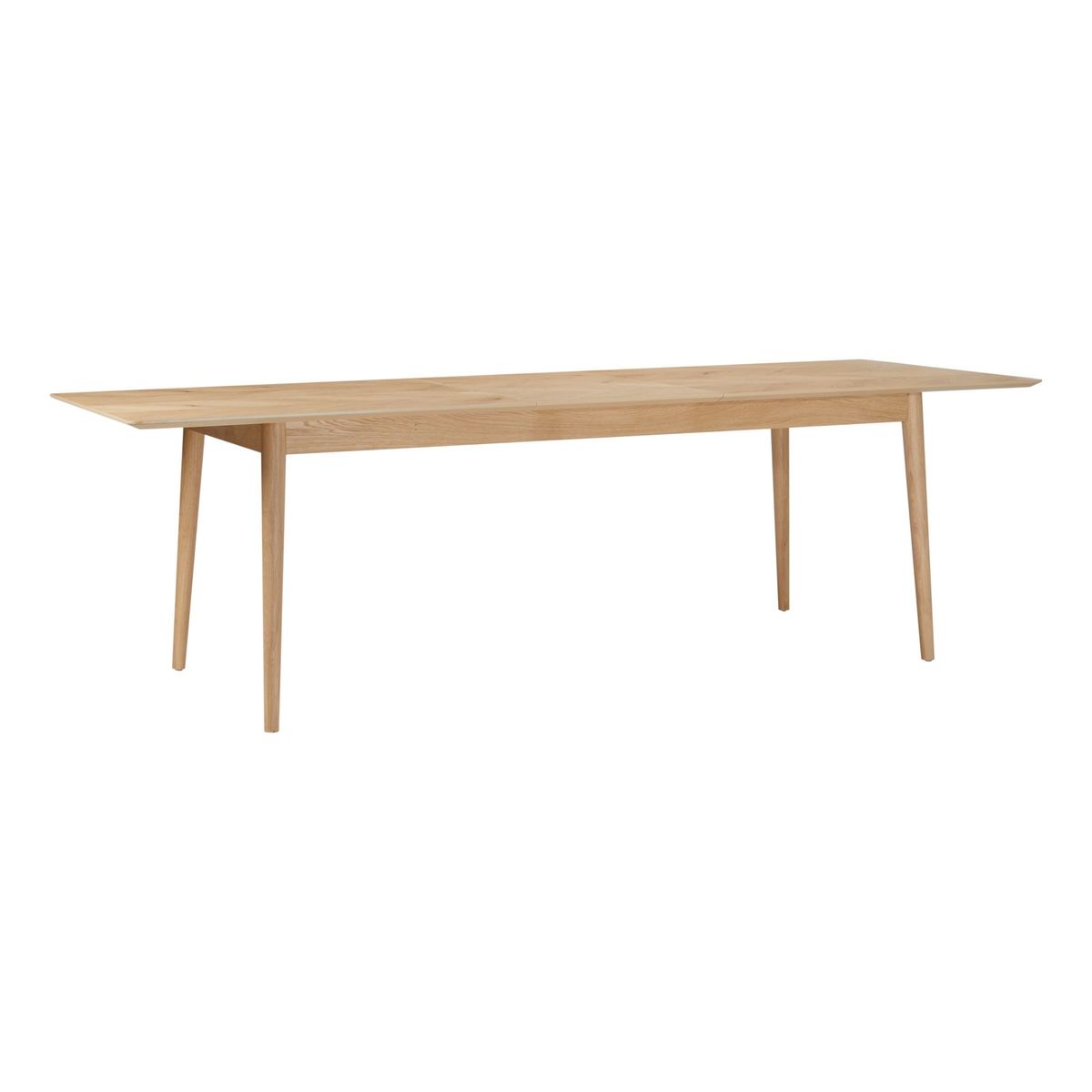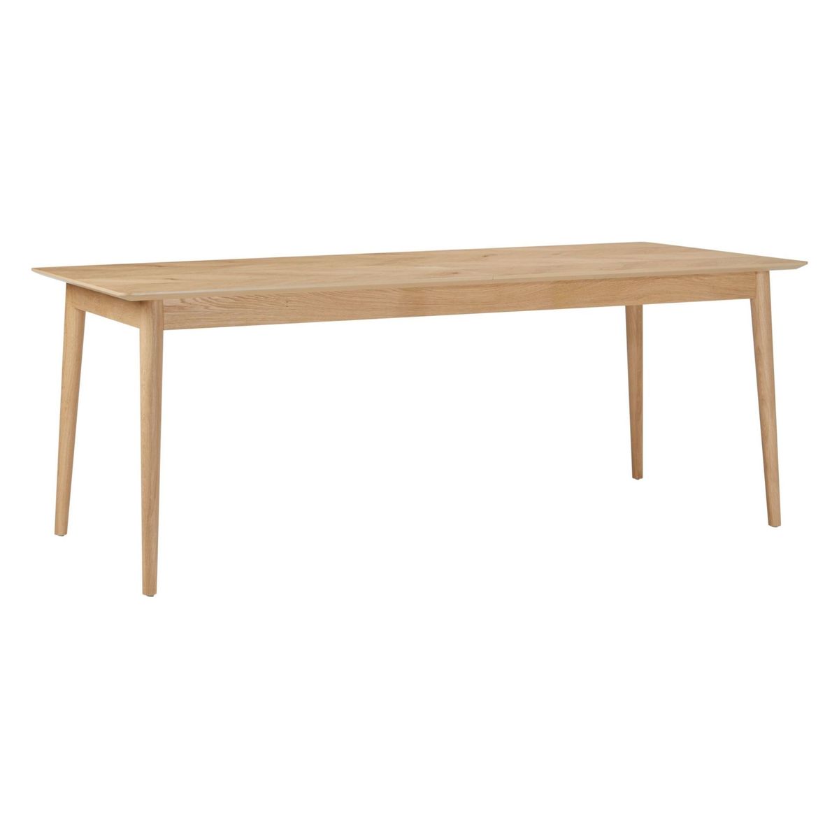 The Milano range from Hudson Living is made from the finest European Oak solids combined with rustic chevron veneers. The collection is wonderfully versatile, showcasing the appeal of natural materials and the true beauty of oak.;The natural profile of this extending dining table will make it a feature piece in your space. Expertly crafted from solid oak and MDF, it comfortably seats eight diners, and can be easily adjusted with a 50cm extension leaf to seat ten. Tactile and smooth, its sleek surface is supported by sturdy, rounded legs that taper to the ground.;Boasting a beautifully natural, pale wood finish, it's the perfect solution for entertaining guests.