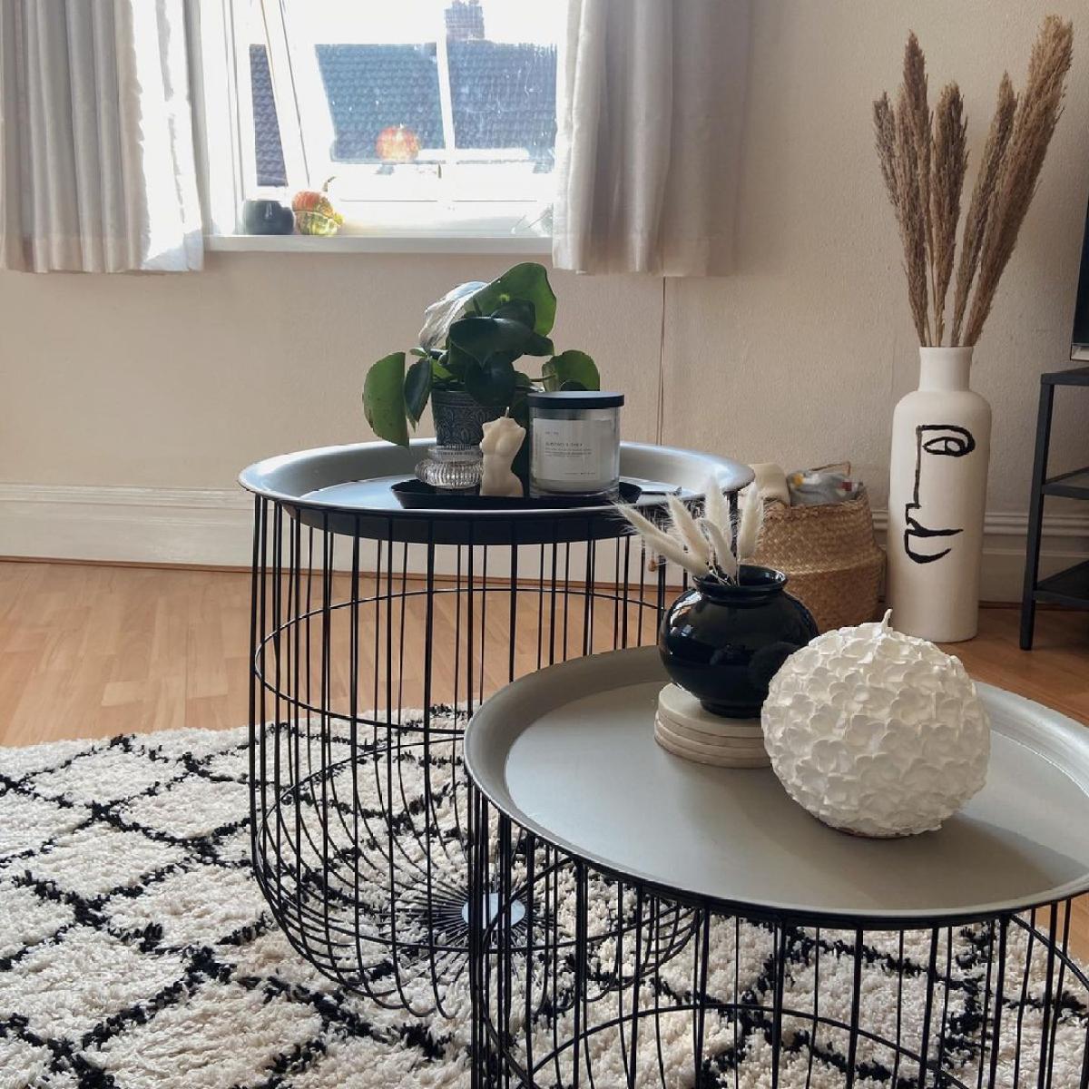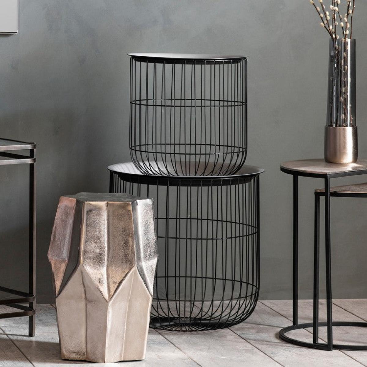 Bring a functional and stylish addition to your interior with this black nest of 2 Barton tables. Unique in design, this unusual set cleverly stacks away into one compact table as the lids come off and separate. With an open, mesh-like design, this set of tables are ideal for storing cushions or throws inside its centre to create an interesting, textured display. Perfect for entertaining with family or friends, position around the seating in your living space for an extra space for resting drinks and nibbles. *Moot Trading Ltd is not a lender and acts only as an introducer. The credit product is provided by Klarna Bank AB (publ). Credit is only available to permanent UK residents aged 18 and over, subject to status. Terms and conditions apply. Please note that the following products are not regulated by the FCA: Pay in 30 days and Pay in 3 instalments. Read More.