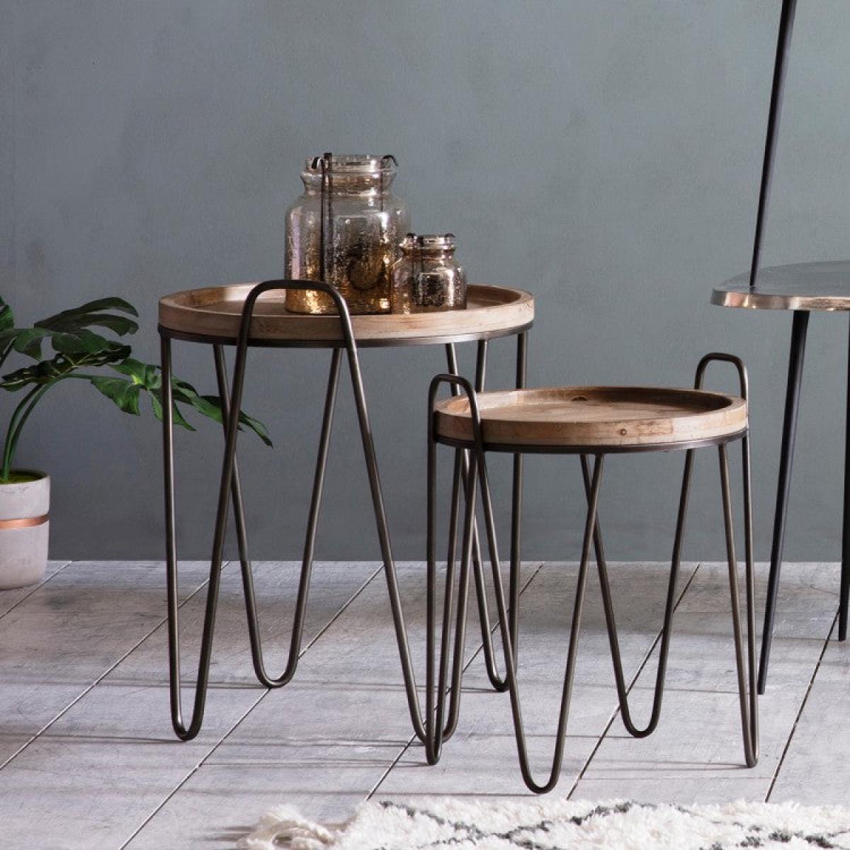 For a set of tables with chic elegance and practicality, consider the Nuffield Nest Table Set. This set of two tables has a unique and practical design, with one small table and a larger one that can combine to create one surface and can then easily be stacked into one another for simplicity and space-saving. The Nuffield Nest tables also have an industrial style and hairpin leg frames. They are well-sized, with the large measuring 51 cm in width and depth and 61. 5 cm in height and the small measuring 51 cm in width, 41 cm in depth and 39. 5 cm in height. *Moot Trading Ltd is not a lender and acts only as an introducer. The credit product is provided by Klarna Bank AB (publ). Credit is only available to permanent UK residents aged 18 and over, subject to status. Terms and conditions apply. Please note that the following products are not regulated by the FCA: Pay in 30 days and Pay in 3 instalments. Read More.