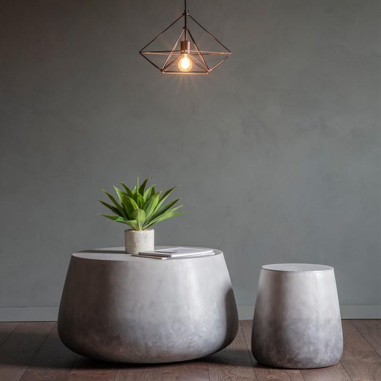 This eye-catching side table has been artfully created from a form of polished concrete, a very modern and highly attractive material. Although the weight is kept moderate (this piece is just 14kg. View More.. This eye-catching side table has been artfully created from a form of polished concrete, a very modern and highly attractive material. Although the weight is kept moderate (this piece is just 14kg) the Otley side table is durable enough to use outdoors as well as in. Its elegant appeal also derives from its graceful geometric shape and its ombre-silver colour palette, which works well with the neutral and earthy colour schemes currently in vogue. The Otley seems to have a magically calming effect. This side table is 41. 5cm high and 39cm in diameter. A matching Otley coffee table in the same material is also available.