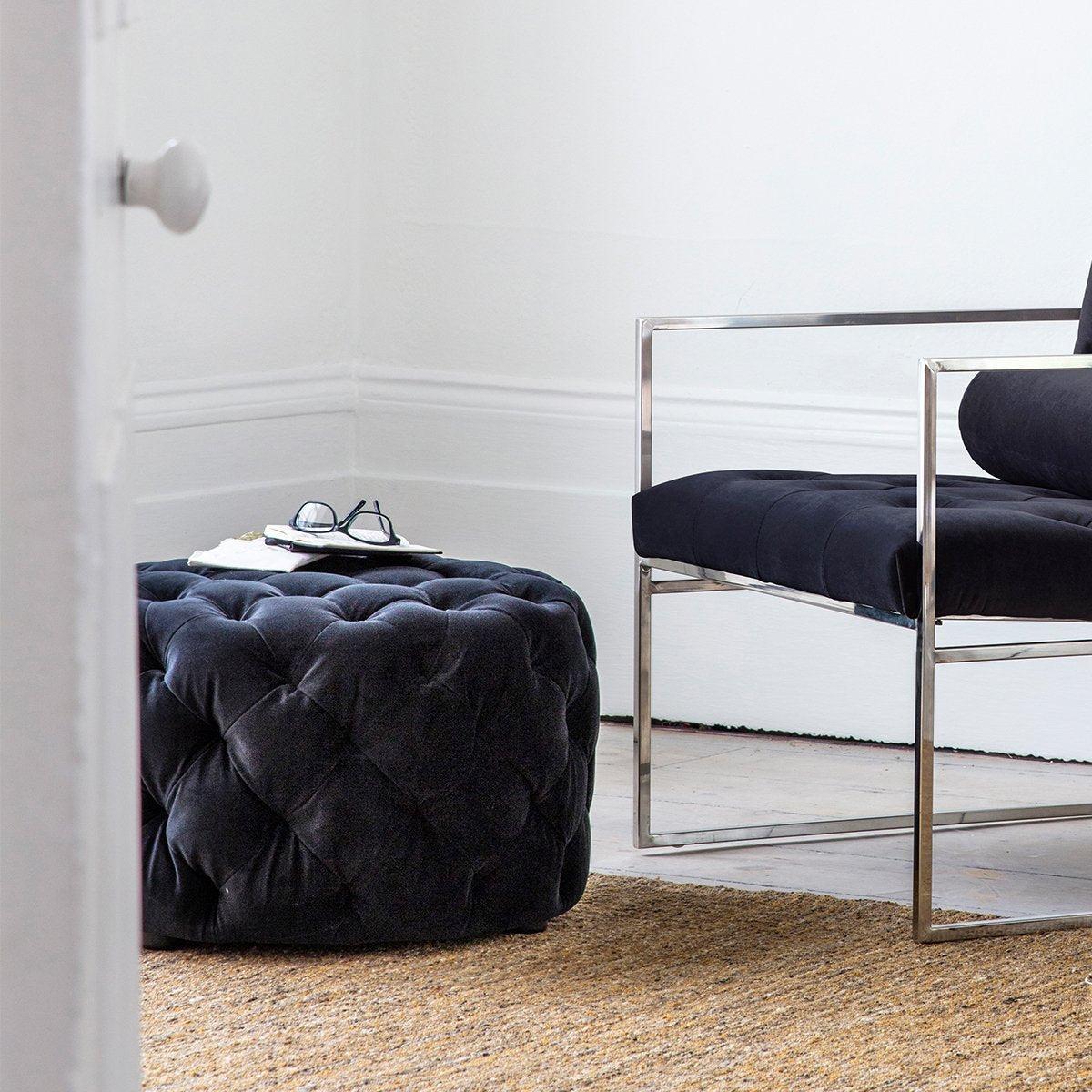 Available in black or grey velvet, there'a Sergio footstool to work with your interior no matter the colour scheme. Add a touch of sophistication and elegance to your interior with this striking footstool. Upholstered in a sumptuous velvet, these beautiful footstools feature a buttoned design over its entire structure, adding even more texture and detail. *Moot Trading Ltd is not a lender and acts only as an introducer. The credit product is provided by Klarna Bank AB (publ). Credit is only available to permanent UK residents aged 18 and over, subject to status. Terms and conditions apply. Please note that the following products are not regulated by the FCA: Pay in 30 days and Pay in 3 instalments. Read More.