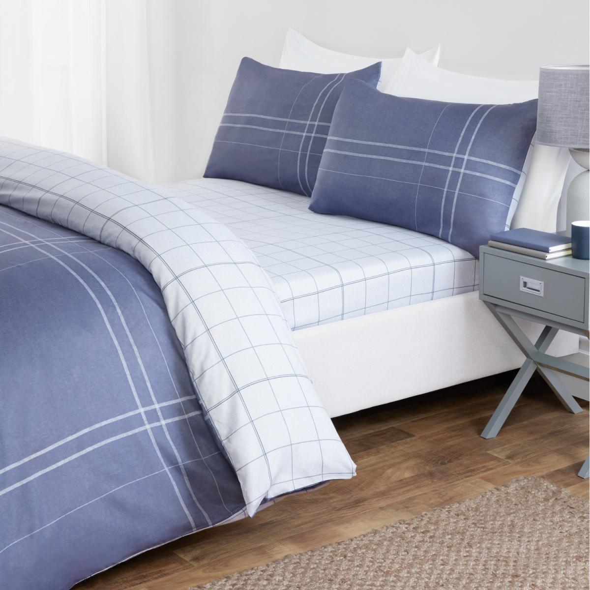Hudson Microfibre Polyester Check Complete Duvet Set With Pillowcase - Multi / Single
