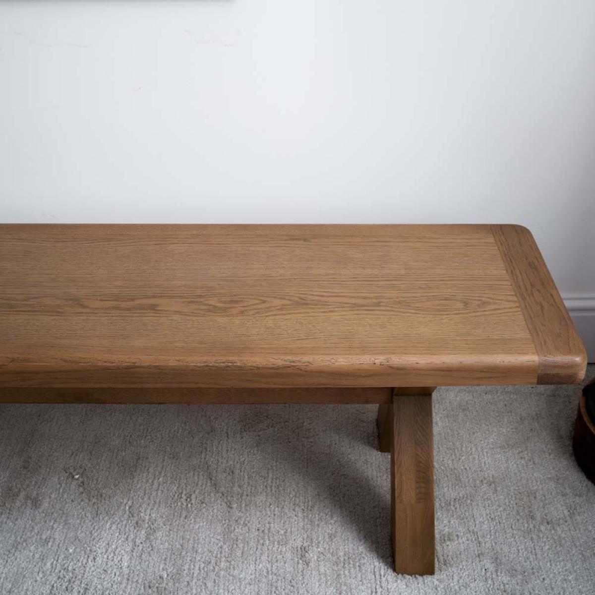 The Hudson Oak Dining Bench is a great addition to your dining arrangement. An oak bench seat is a practical alternative to chair seating, and brings a more sociable feel to the dining experience. Combine the oak dining bench with the Hudson oak dining table and chairs to complete the look. Dimensions: W200cm x D40cm x H46cm Solid oak top. No Assembly Required.