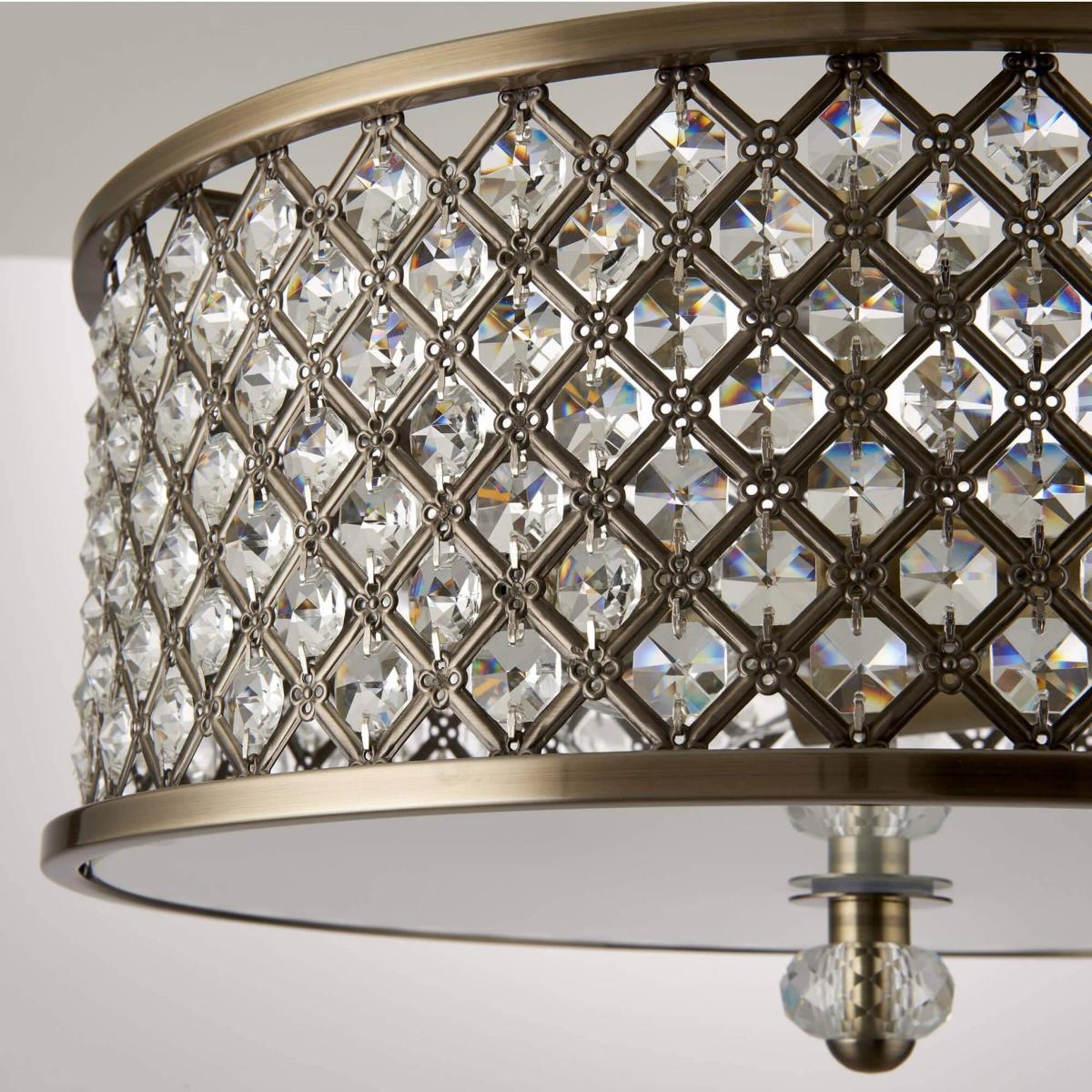 The Hudson 3 light ceiling light is a beautifully designed piece from Lighting. This semi-flush fitting boasts a gorgeous antique brass finish and features an array of crystals which look gorgeous when lit. The height and diameter of the Hudson 3 light ceiling light are 340 and 405mm respectively. It also requires an ES (E27 cap) light bulb not exceeding 60w. Product Code: 70558 The Hudson 3 light ceiling light is a beautifully designed piece from Lighting. This semi-flush fitting boasts a gorgeous antique brass finish and features an array of crystals which look gorgeous when lit. The height and diameter of the Hudson 3 light ceiling light are 340 and 405mm respectively. It also requires an ES (E27 cap) light bulb not exceeding 60w. Product Code: 70558