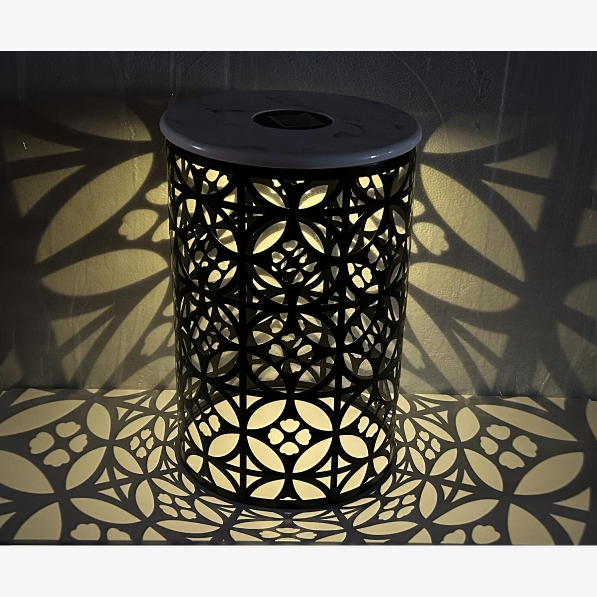 Add a touch of elegance to your outdoor space with the Hudson Solar Table. Featuring a unique geometric cut-out design, it combines modern style with functionality. The solar-powered light casts a warm, inviting glow, perfect for evening gatherings. Hudson Solar Table - Black and White