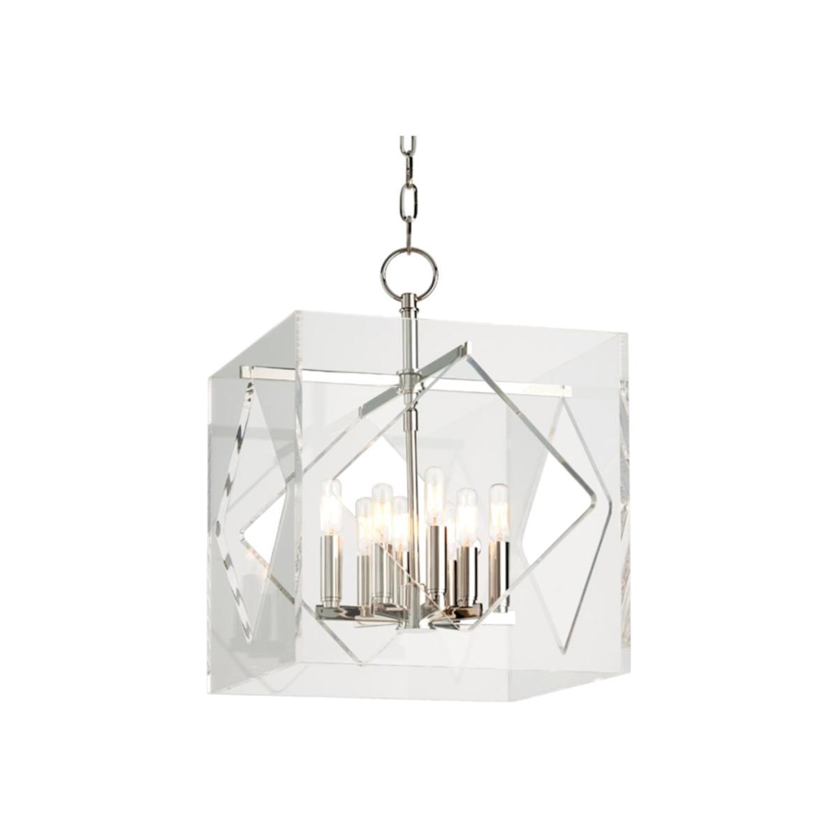 The pleasing simplicity of Travis’s cube shape with diamond cutaway, along with its sophisticated contrast of materials—acrylic and metal—make it a perennial darling. Its transparent sheen allows you to see various features of the room while its shapes make a playful design impact. By using modern materials on a tightly scaled chandelir, Travis offers a postmodern take on a Hollywood Regency style.