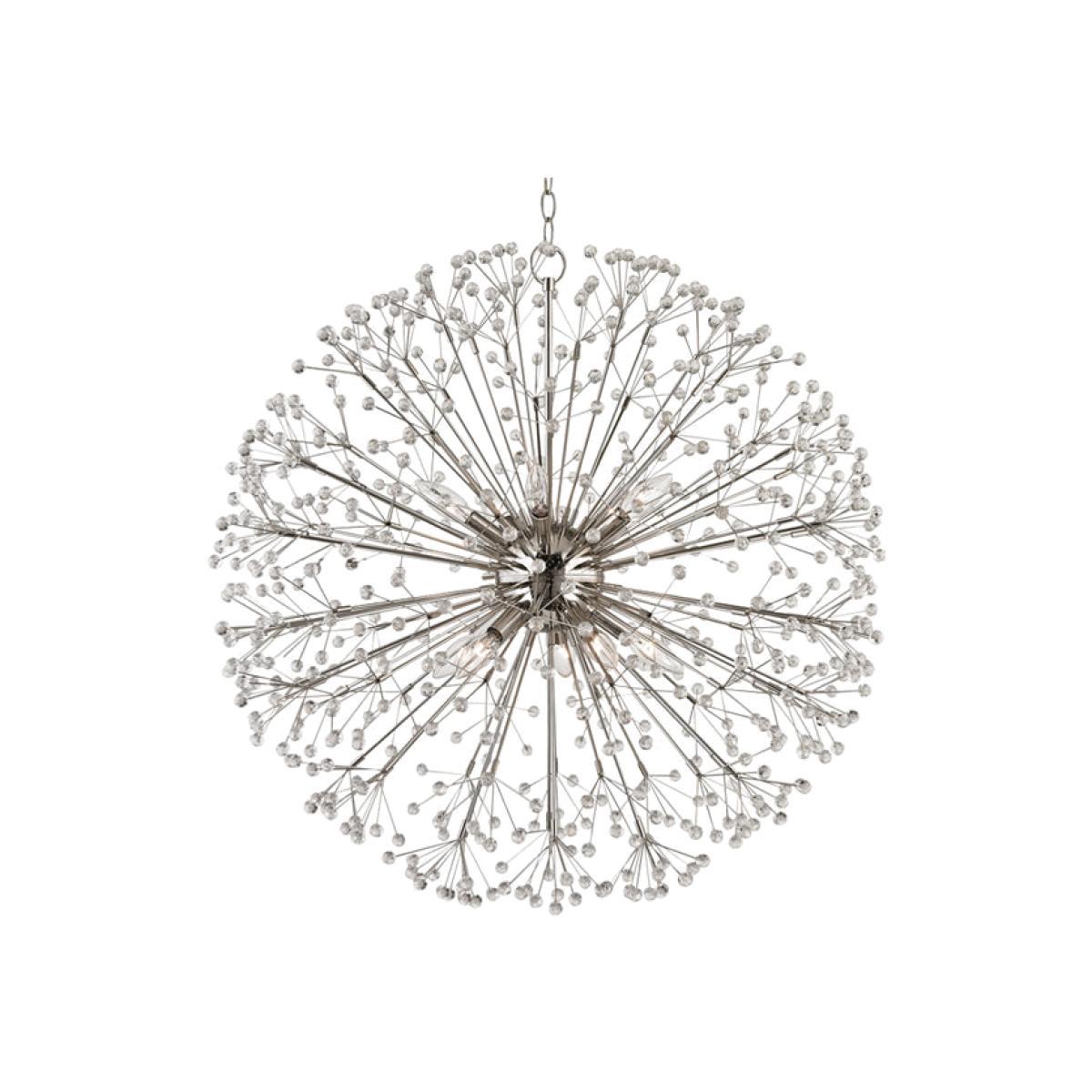 With both the delicacy of a dandelion head and the drama of an airburst shell, the Dunkirk chandelier is a design classic. 10 lights stem from a central steel globe, partially concealed behind a sphere of cut crystal beads mounted on fine steel tubes finished in polished nickel. The crystal halo illuminates from behind like a twinkling firework. This is a versatile piece that works in any room, with both light and rich décor, traditional or modern. It is simply marvellous on a verandah against a starry sky. Also available in an aged brass finish, in larger or smaller sizes, and as a flush-mount fixture. *Moot Trading Ltd is not a lender and acts only as an introducer. The credit product is provided by Klarna Bank AB (publ). Credit is only available to permanent UK residents aged 18 and over, subject to status. Terms and conditions apply. Please note that the following products are not regulated by the FCA: Pay in 30 days and Pay in 3 instalments. Read More.