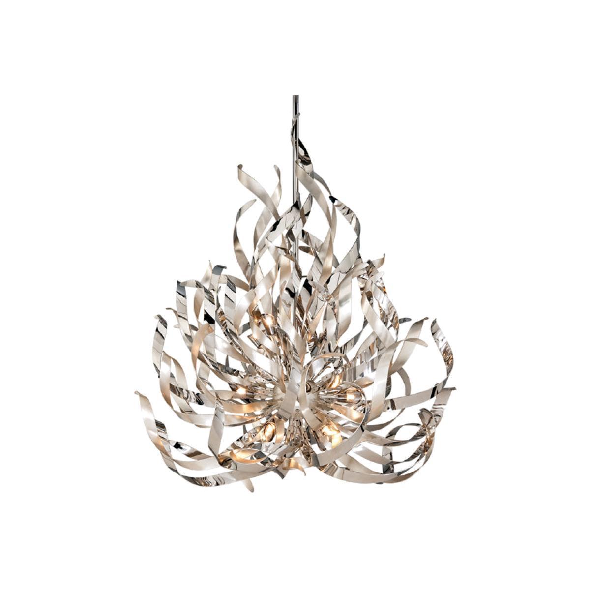 I love this pendant for its industrial yet sculptural appeal-it adds a real statement to any ceiling space. Its hand-worked iron finish and organic, flame-like form make it versatile, working well in both moderne and rustic interiors. It's a great choice for over kitchen islands, dining tables, or even in a hallway to create visual interest. For styling, consider pairing it with simple, understated decor to let its unique form stand out. Pairing with warm filament bulbs enhances its warm, inviting glow, while keeping the ceiling height and scale in mind helps ensure it feels balanced in the space. This piece is a clever mix of art and function that can elevate the look of both contemporary and eclectic interiors.