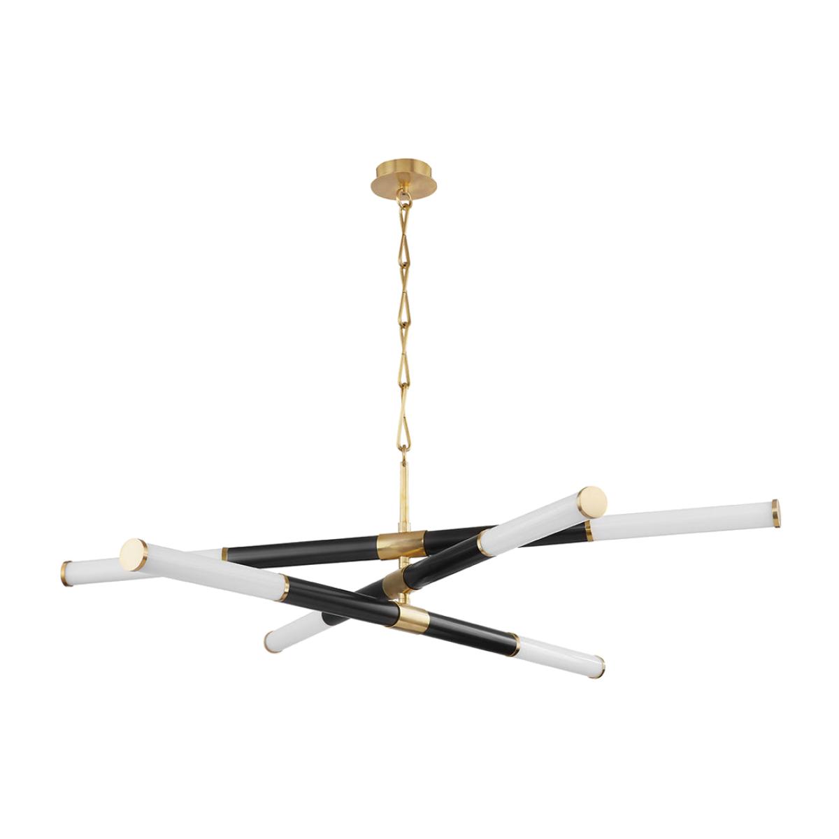 Olivia’s is pleased to present the eye-catching Huntington LED chandelier from the innovative and creative designers at Hudson Valley. Update and modernise your interior décor by replacing tired, o. View More. Olivia’s is pleased to present the eye-catching Huntington LED chandelier from the innovative and creative designers at Hudson Valley. Update and modernise your interior décor by replacing tired, outdated light fittings with the simply beautiful, unique Huntington. Milk-glass tubes are sheathed with bold black shades and capped with metal accents, creating an interesting effect that will bathe your interior in a warm, inviting glow. The Huntington chandelier comes in a choice of two stunning finishes: The aged-old bronze version is pictured below, and the second finish is a gleaming, polished nickel. Both will elevate the tone of your interiors. Measures: Height: 400. 05cm x Width: 152. 4cm.