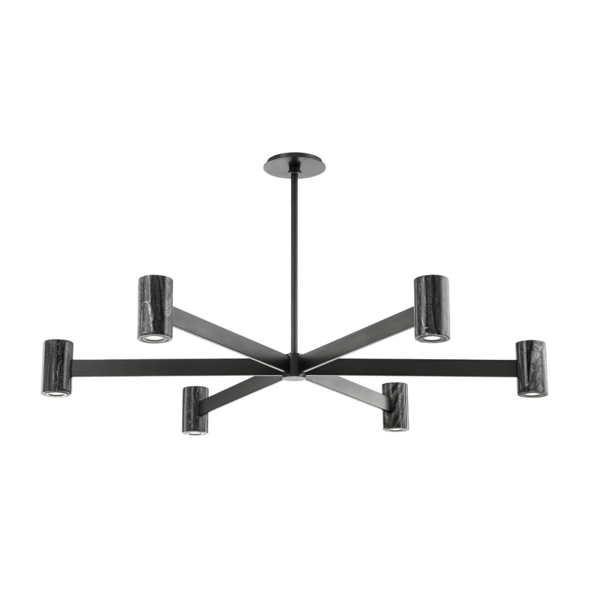 Predock combines a streamlined silhouette with significant materials; the result is clean and modern. Light pours down from the honed Nero Madera marble shades and contrasts beautifully with the black brass metalwork. Available as a chandelier, linear or sconce, Predock adds a sophisticated look to hallways, kitchens, dining rooms and more. Dimensions: H: 17.15 x W: 114.3 x D: 114.3 cm Materials: Steel, Ancient Wood, Marble Bulb Type: Bulb Type: 6 X Led Max 24W - Not included Assembly Required: Yes - Requires hard wiring by an electrician. Rating: Location Rating: Damp Care Instructions:Dust with a clean, dry, soft cloth. No harsh abrasives or cleaners