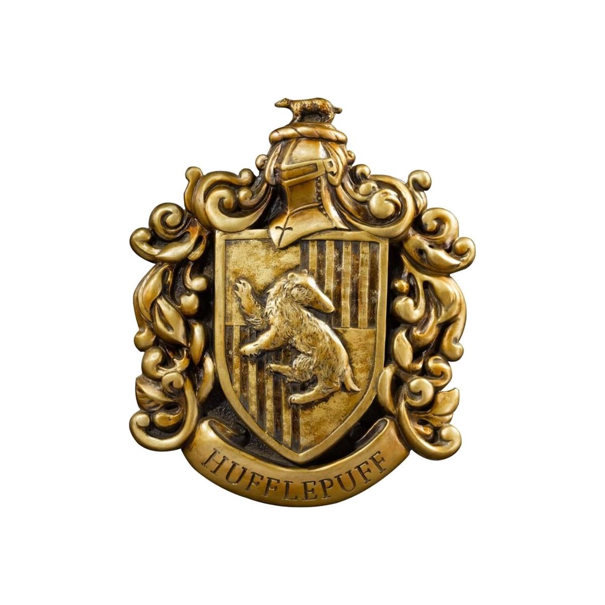 Inspired by the Harry Potter film series, this finely crafted Hufflepuff Wall Crest is cast in resin and hand-painted in a fine gold colour with darker areas in the relief for an authentic vintage finish. The crest features the Hufflepuff house mascot, the badger, and the house name underneath.