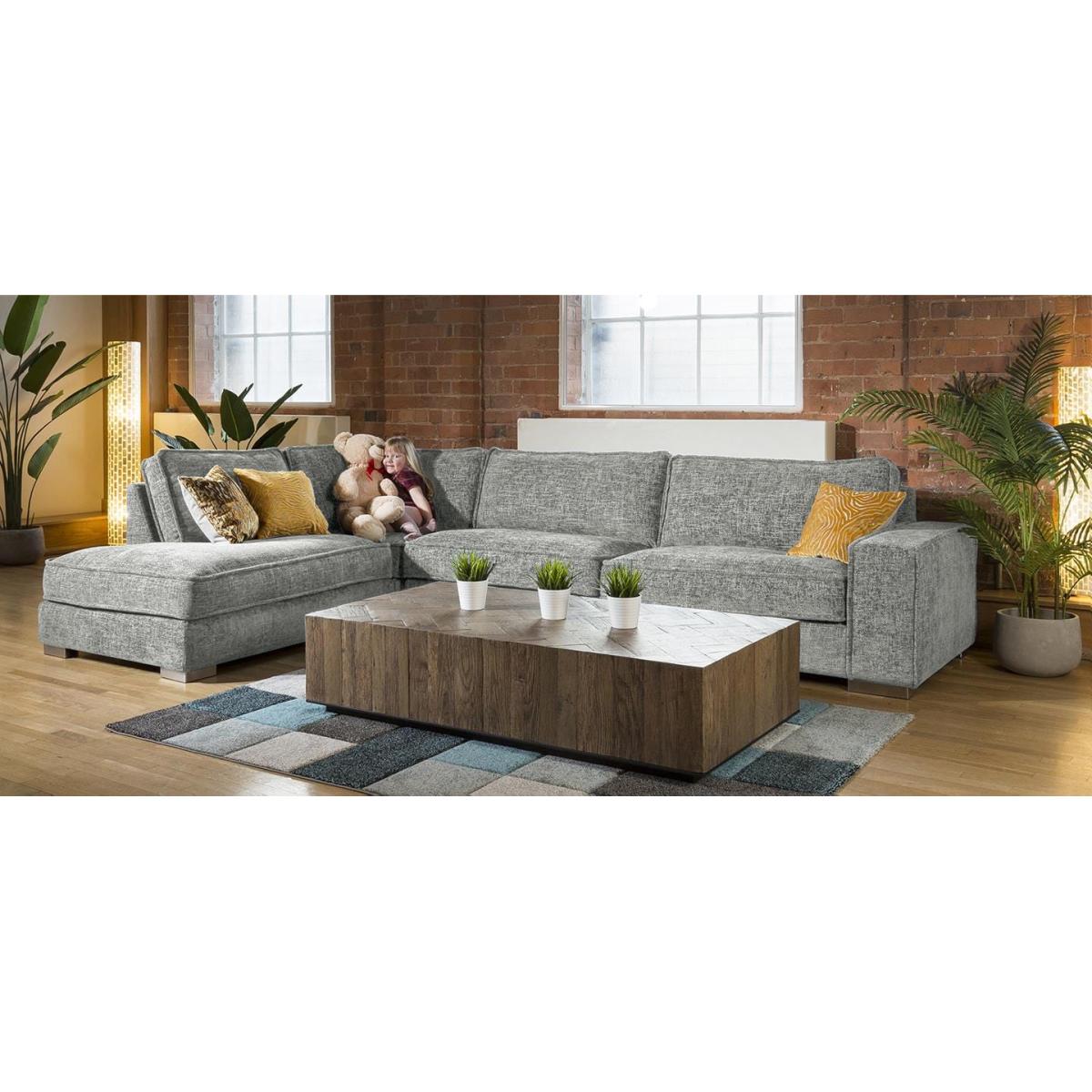 The striking Lexci 5 seater sofa is unique to Quatropi. The modern sofa can seat up to 5 people and would look perfect in any living room or cinema room. The Lexci 5. L sofa is a great addition to the Lexci range and would be complemented by one of the matching Lexci footstools. This sofa is totally customisable with a full range of fabrics & colours to choose from. Beautiful design with soft padded arms, massive corner and U shaped sofa options and two different sizes of footstools. The Lexci range includes large back pillow cushions that doesn't only provide a stunning look, they also give versatility to ensure your comfort whatever your size or seating position. All pieces are superb quality with exceptional attention to detail especially the French stitched seams. Some of the great features of the Lexci range include oversize sections including corners, middle sections, footstools and Chaise ends, striking brushed stainless feet, thick French seams and soft back cushions give a completely unique contemporary look. Built with pillow soft hollow-fibre and high density foam cushion fillings, plump the back cushions occasionally to keep them looking fabulous. The Lexci range is completely modular so you can add and take away pieces as you need. Let our experts help you find the exact size and shape to fit your space perfectly. W335cm D220cm H83cm Soft Sit Cushions All dimensions are approximate due to fabric differences. Please allow tolerance of +/- 5cm to any direction