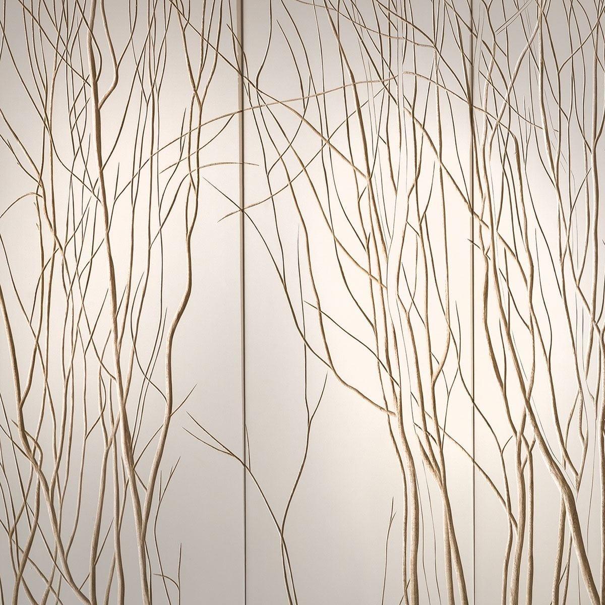 A three panel piece of art on paulownia wood of a small group of trees. The solid wooden boards are first painted white, then the tree is painstakingly hand carved into the wood one line at a time to reveal the delicate beauty of the raw wood below. Designed over 3 large panels which can be hung close together or with a small gap between each. Hanging clips are included but not wall fixings. W90cm D4cm H90cm Hand Carved Quatropi Modern Home Accessories