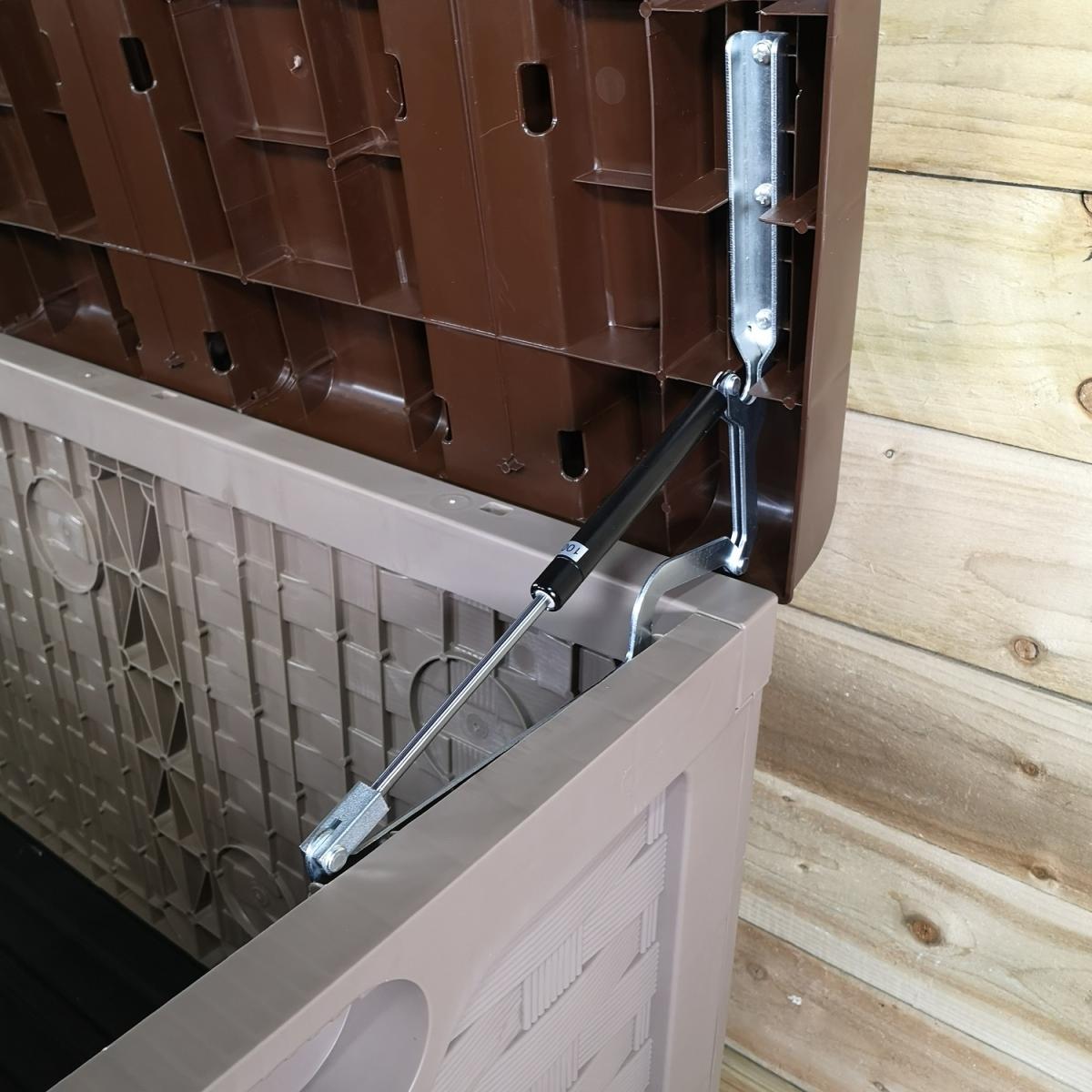 This is an excellent box for outdoor storage of gardening tools, seeds, fertiliser and pretty much anything else you can think of, It also doubles as a bench seat for 3 people! Made from weatherproof polypropylene brown in colour, helping it blend in your garden indoor Outdoor garden storage chest with a lockable sit-on lid that doubles as a bench seat for 3 adults. UV Stabilized plastic so colours will not fade. Handles for easy moving. Includes lockable lid for security (padlock not supplied) complete with Pneumatic pistons for easy lifting of the lid can be assembled in minutes without any tools!