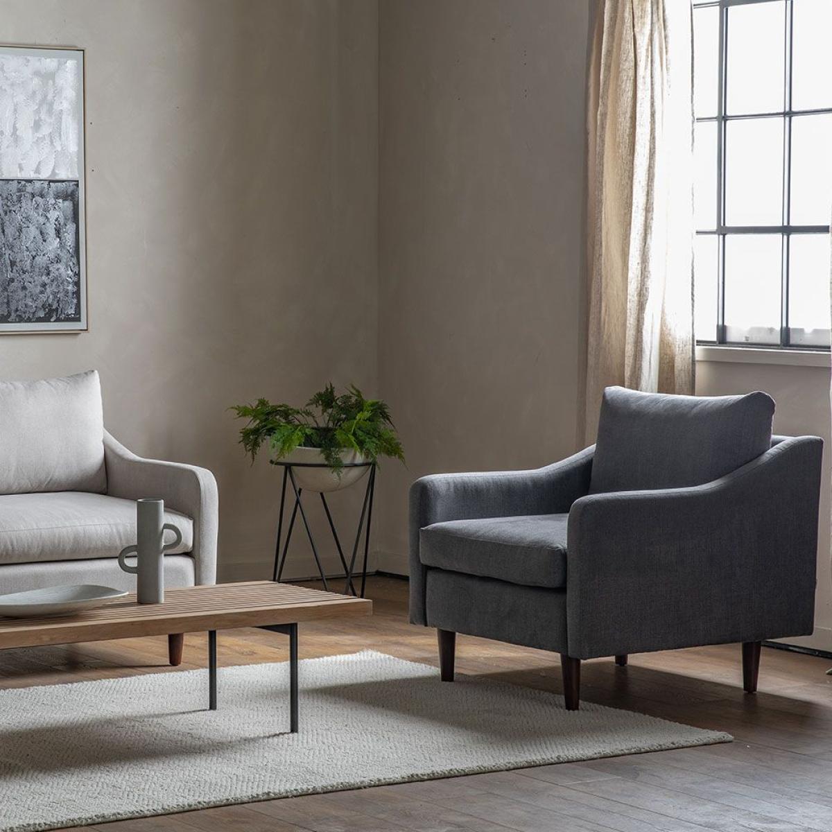 The Hugo Armchair Sofa In a Box is a sleeker style suited to a arrange of interiors including modern and traditional. Constructed from high quality materials, it features sleek sloped arms and dark wooden feet, with fibre and foam wraps creating a stylish and comfortable piece. Available in an assortment of fabrics. Delivered in a convenient box which once opened allows easy assembly in under 5 minutes, with no tools needed. Dimensions: W86cm x H84cm x D90cm. Delivered in a box Dark Wooden Feet Simple self assembly Handmade In The UK.