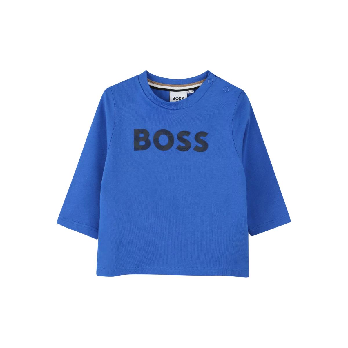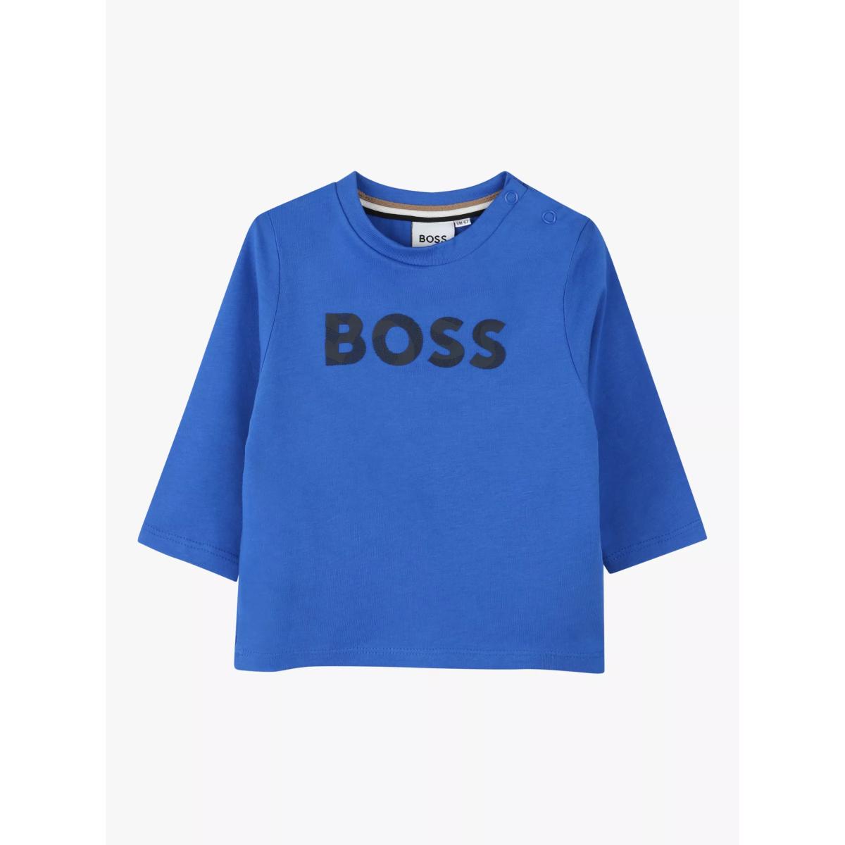HUGO BOSS Baby Cotton Long Sleeve Top, Bright Cobalt
