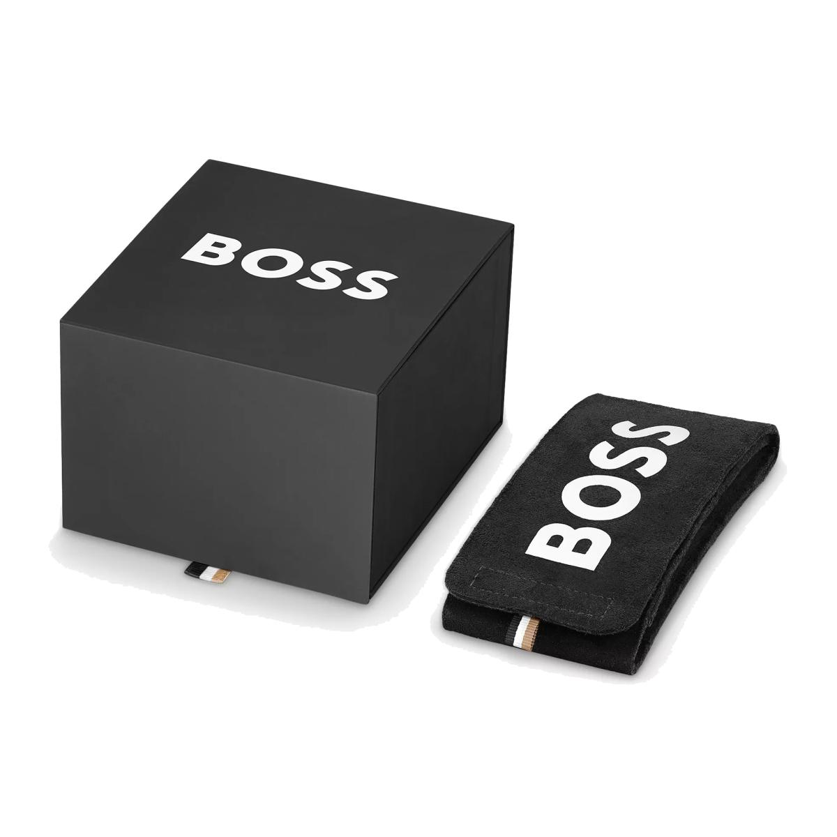 Offering unparalleled precision, this designer watch from HUGO BOSS boasts a smooth round face and is fitted with sub-dial chronographs for functionality. Lighter on the wrist thanks to its band strap, the matte finish is sure to make a distinct, modern statement.