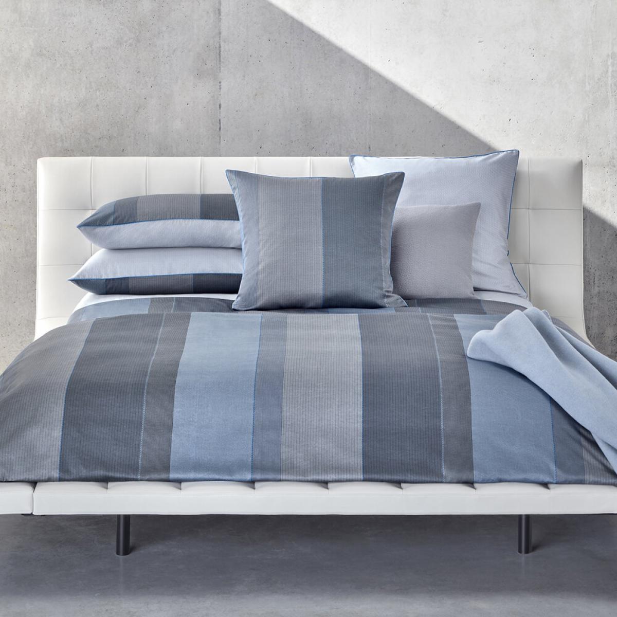 Bring sophisticated style to your bedroom with this Ritmo duvet cover from Hugo Boss. Made from 100% organic cotton with a luxe 300 thread count, it features a classic stripe design in an array of blue tones. Pair with the matching pillowcase to complete the look. Key features: * Material: organic cotton * Dimensions: 260x220cm * 300 thread count * Stripe design * In blue tones * Button closure * Matching pillowcases available separately