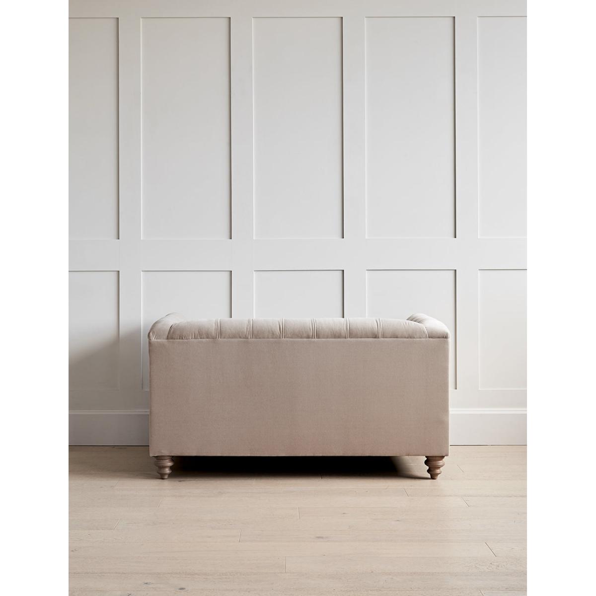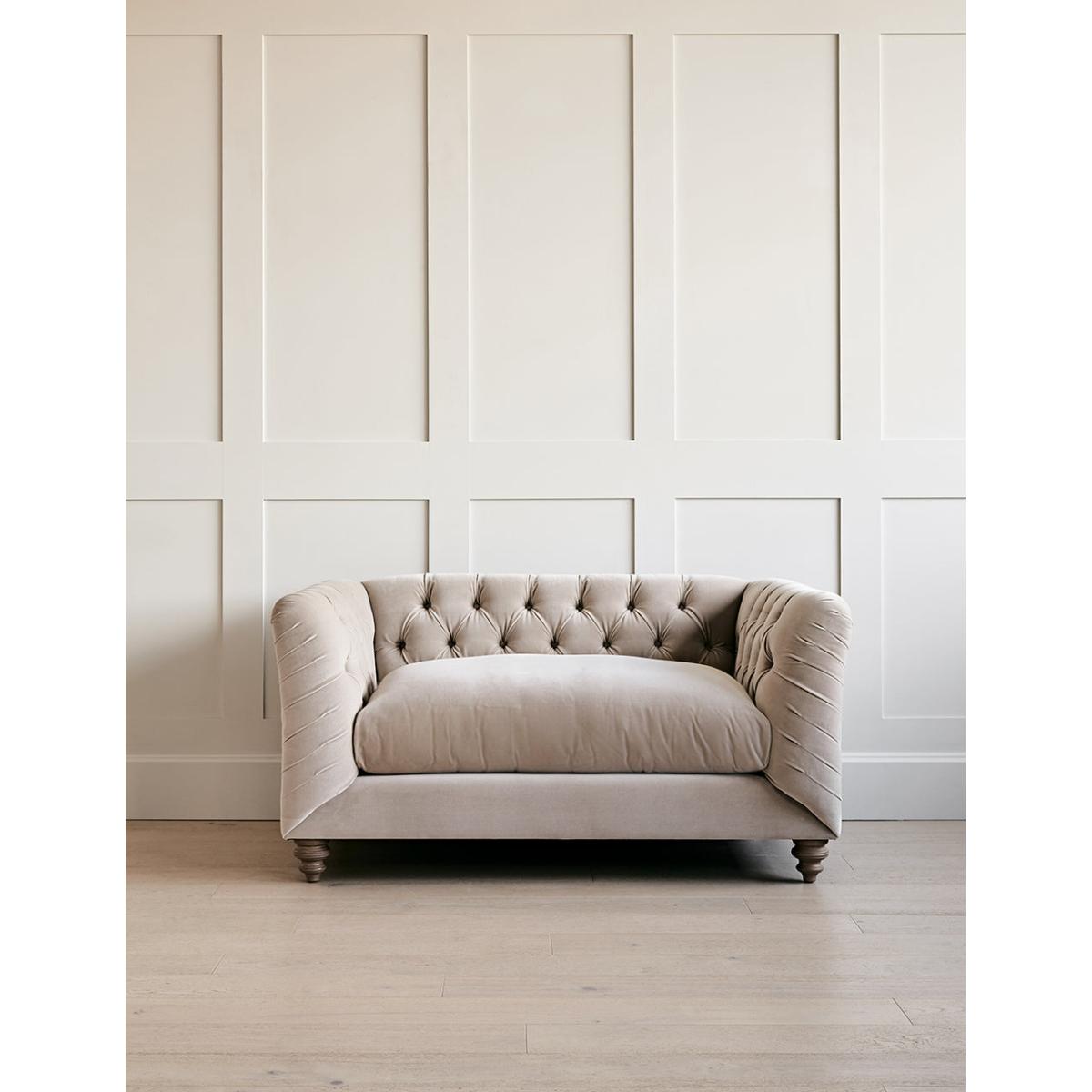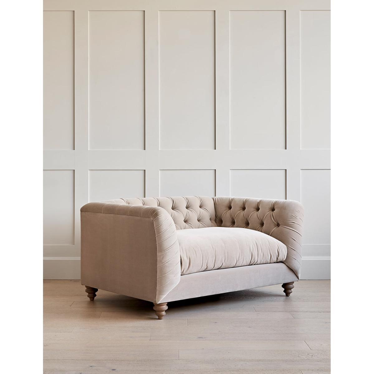 Our Hugo Chesterfield Love Seat. Perfectly combining a classic look with more modern touches, this stylish Chesterfield looks just as good in neutral colours as it does in more vibrant hues. Featuring the same comfy and squishy cushions that the rest of our Snuggle collection is known for, the Hugo offers the perfect juxtaposition of comfort and style. Pair with the matching Hugo Chesterfield Sofa and Corner Sofa. Photographed here as a Love Seat in Velvet Dove. The leg colour in the product image is Driftwood. All other images are computer generated as a colour reference with a Driftwood leg. We recommend you order a free fabric swatch to see your chosen material up close before ordering your sofa!