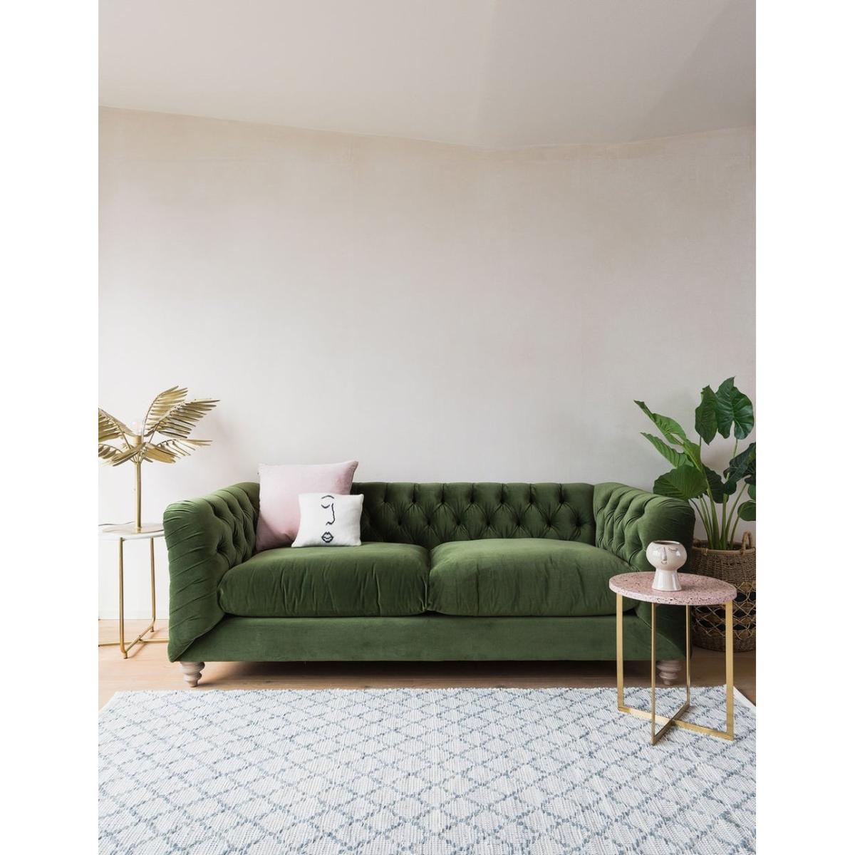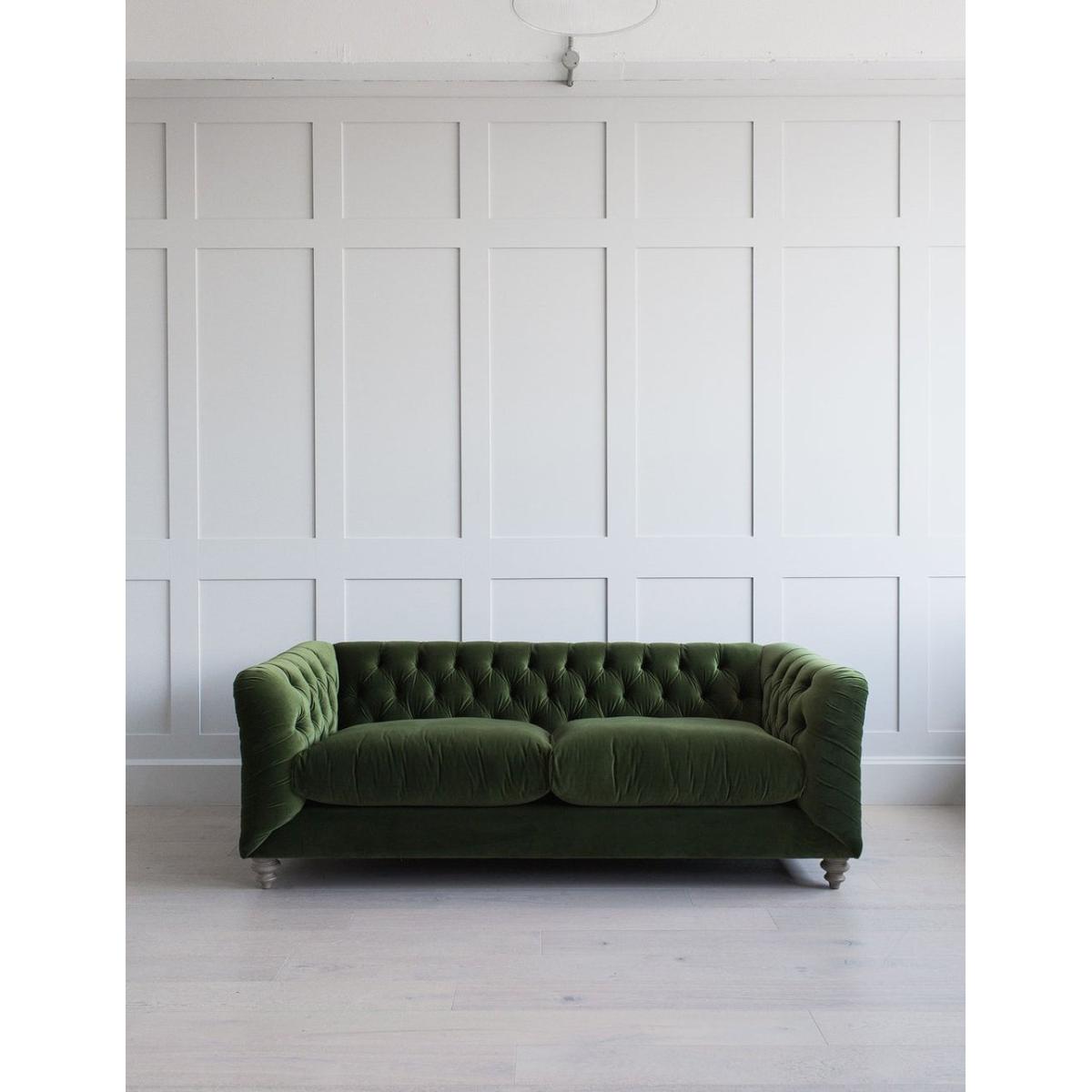 Looking for a slicker, more contemporary version of a Chesterfield sofa? Our Hugo (available as a two, three or four seater and a love seat or corner sofa) is the best-selling sofa in our entire range, thanks to its versatility. Perfectly combining a classic look with more modern touches, this stylish Chesterfield looks just as good in neutral colours as it does in more vibrant hues. Featuring the same comfy and squishy cushions that the rest of our Snuggle collection is known for, the Hugo offers the perfect juxtaposition of comfort and style. Photographed here as a Three Seater in Velvet Vintage Green. The leg colour in the product image is Driftwood. All other images are computer generated as a colour reference with a Driftwood leg. We recommend you order a free fabric swatch to see your chosen material up close before ordering your sofa! Looking for a slicker, more contemporary version of a Chesterfield sofa? Look no further.