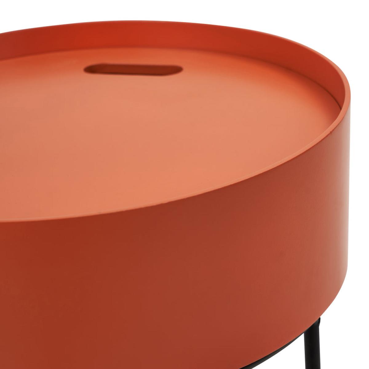 An occasional table with a twist! The Hugo table not only adds additional surface space to a room, but also extra storage space. Perfect for placing a coffee, housing a vase or storing those bits and bobs that don't normally have a home - this table is does it all. Finished in a statement tobacco colour, this piece is the ideal way to add a pop of colour into the home.