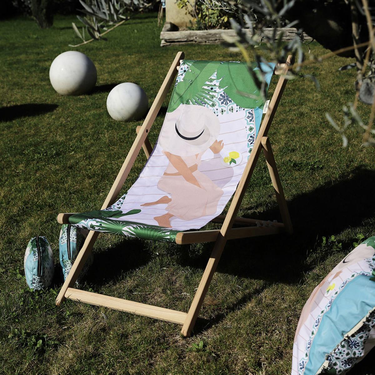Designed and made in France with certified wood and available in a multitude of trendy prints, Pôdevache deckchairs have it all! The water-repellent, UV-resistant canvas is removable: it’s easy to machine-wash. The multi-position backrest adapts to what you’re doing (a nap or reading) and the deckchair folds up for easy storage. Affirm your personality even in your gardens and terraces with these deckchairs with their strong, offbeat visual identity. The Pôdevache brand is committed to keeping its production in France in its workshops located in Valence in the Drôme region. Each motif is designed in its Valence studio. Give in to the temptation of a relaxing break with the Hula deckchair. Inspired by the mixing of cultures, its pattern inspires us, opening our eyes to new colour combinations. Silhouettes that make us yearn for other lands, vibrant ethnic patterns … one thing’s for sure: the journey has only just begun! PLEASE NOTE: Never fold up and store the deckchair with a damp canvas. Like all wooden furniture, this deckchair requires regular care to maintain its beautiful appearance.