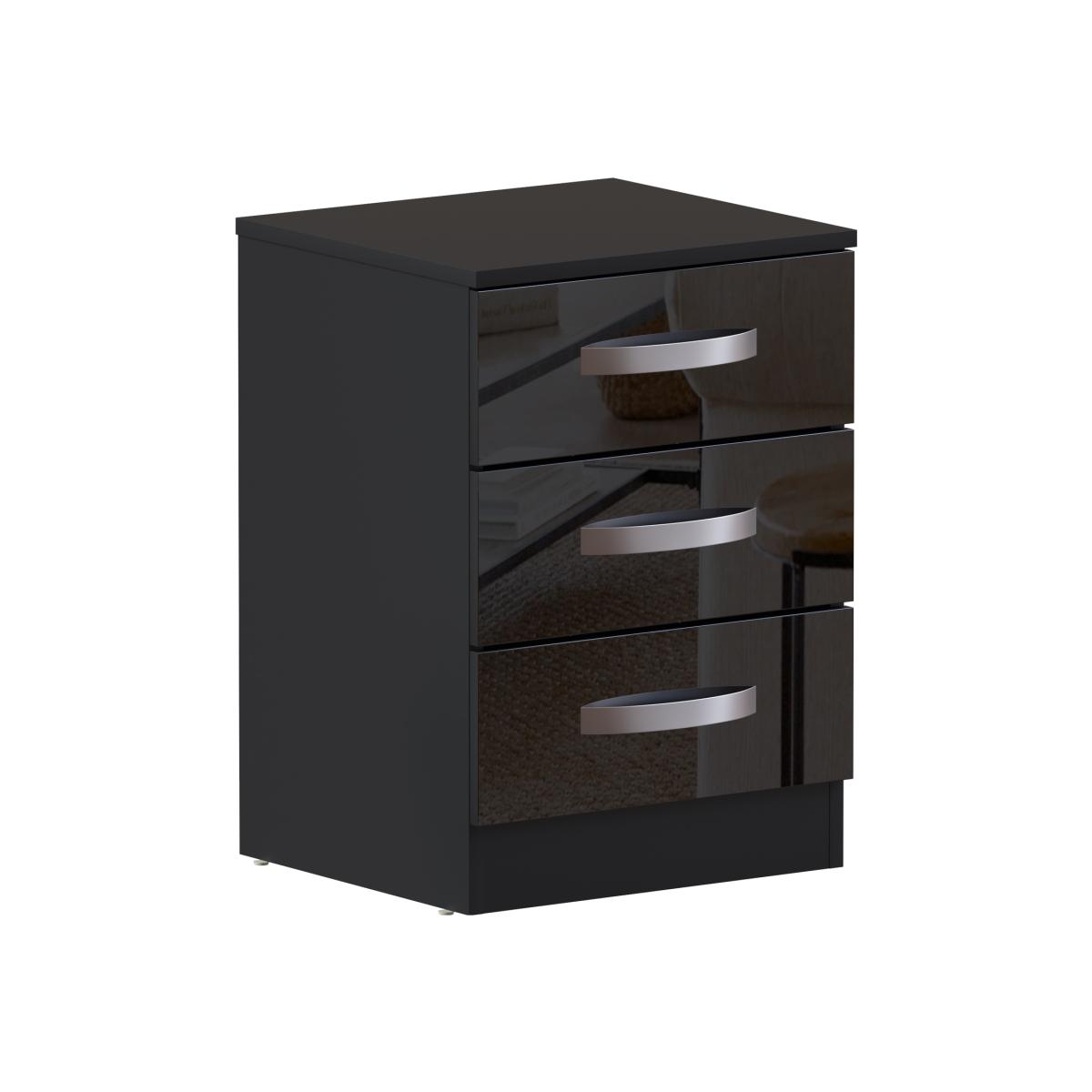 Bedtime routine made convenient and joyful with this Hulio 3 Drawer Bedside Cabinet: no matter what is your going-to-sleep ritual, this chest will ease it anyway. Finished with sleek silverish handles and high gloss front panels. Are you a book lover? No problem, this chest can accommodate a lamp on the top and your glasses can be kept in a drawer, as well as if you want to keep your books somewhere close, then another drawer will be a perfect place to keep them dust-free.
