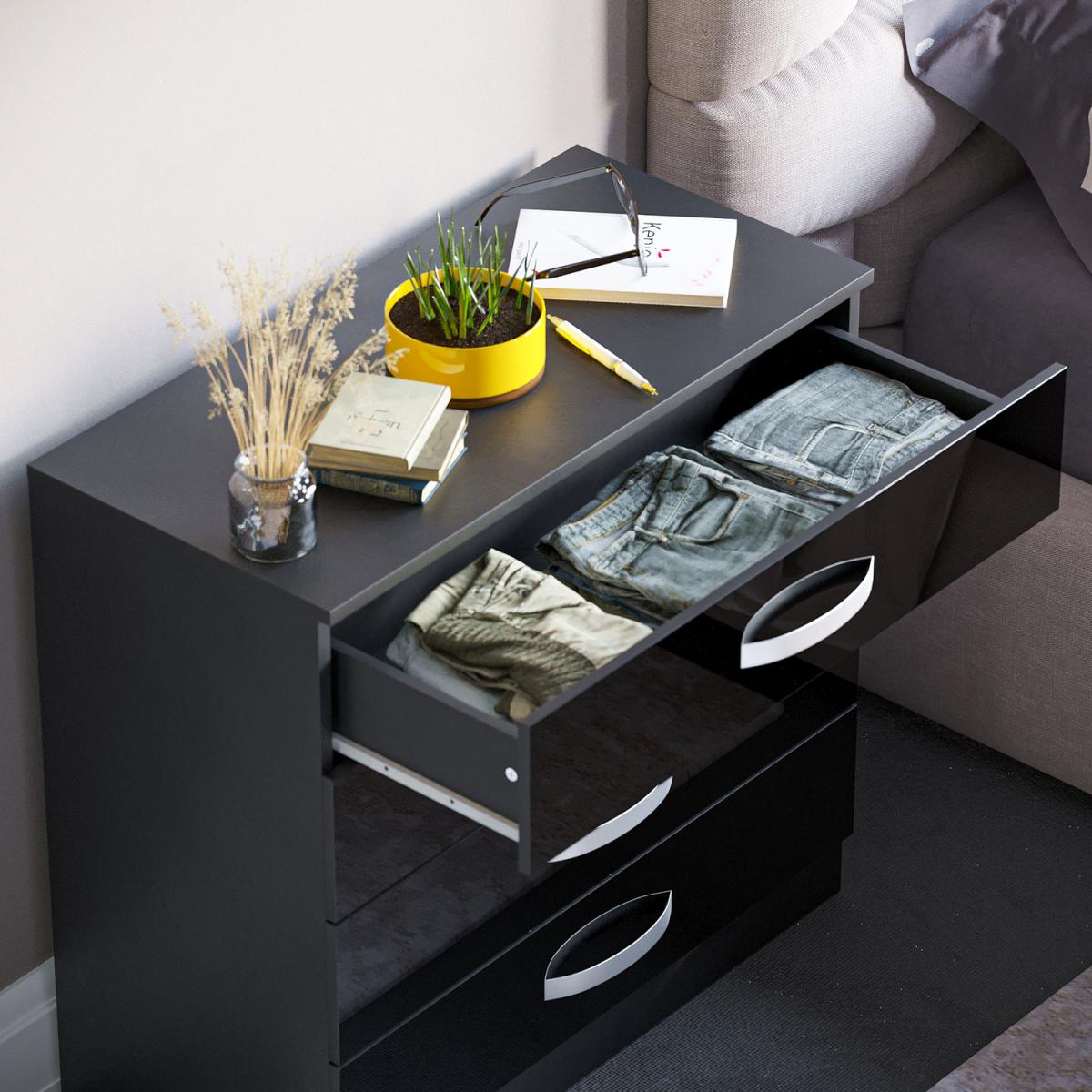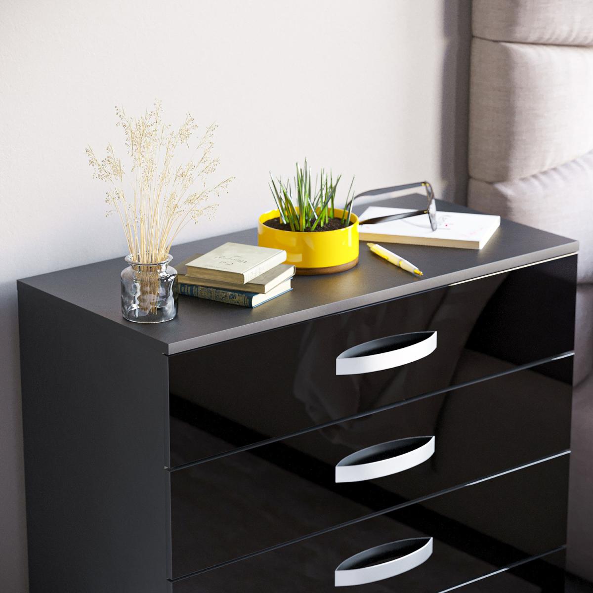 Made from reliable MDF and topped off with smooth silver handles which allow effortless access to your clothes and other daily necessities. The spacious drawers slide out with minimal effort, so you'll no longer have to wrestle with your current decades-old chest making your morning a lot smoother. Spruce up your cosy bedroom interior today with this stylish chest of drawers.