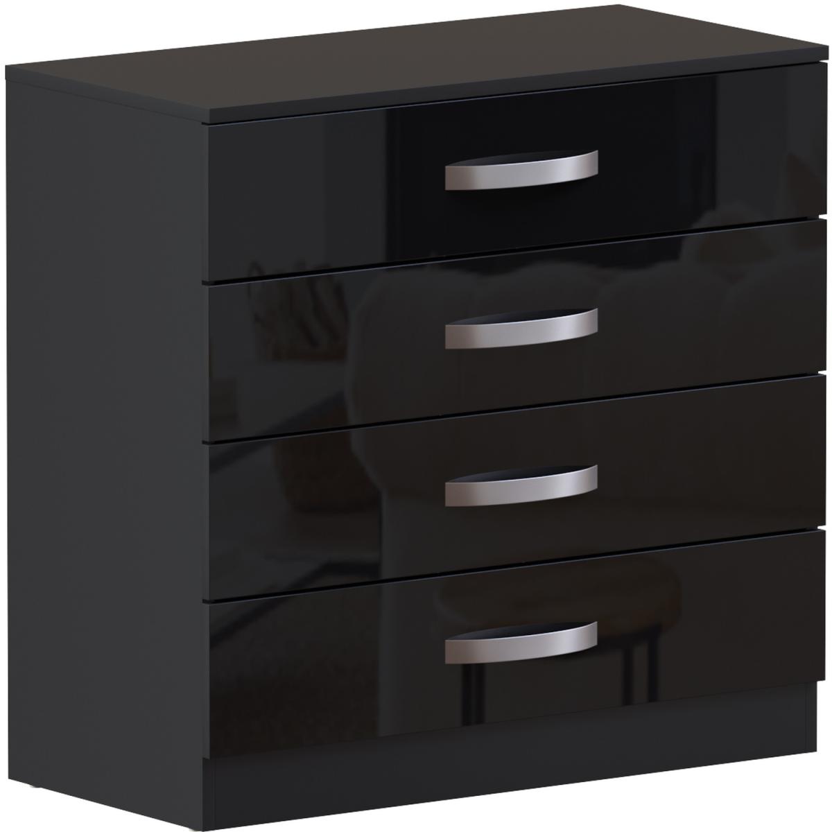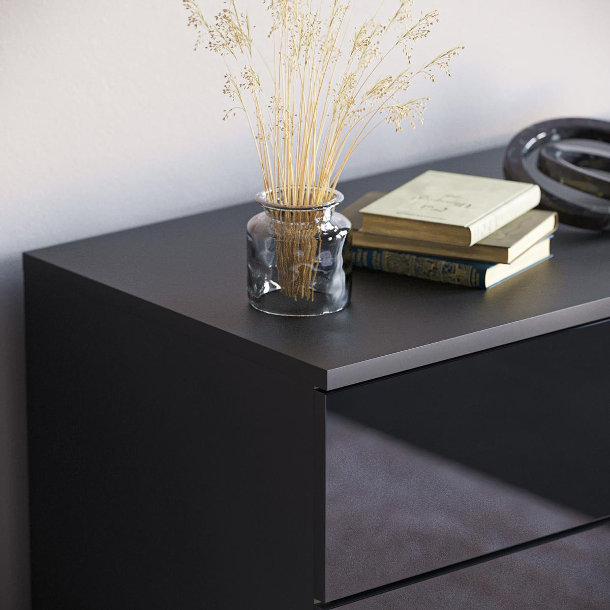 I particularly like how this gloss-black four-drawer chest adds a clean, modern edge without dominating a room, making it ideal for minimalist, urban or even boutique-hotel-inspired interiors. Its compact proportions suit bedrooms or home offices where storage is needed but floor space is tight. Styling tip: top-dress with a mix of heights - for example a slim table lamp, a small plant in a neutral pot and a framed print - then balance the gloss with warmer textures around it, such as a woollen rug or a wooden mirror frame, to prevent the finish feeling too stark.