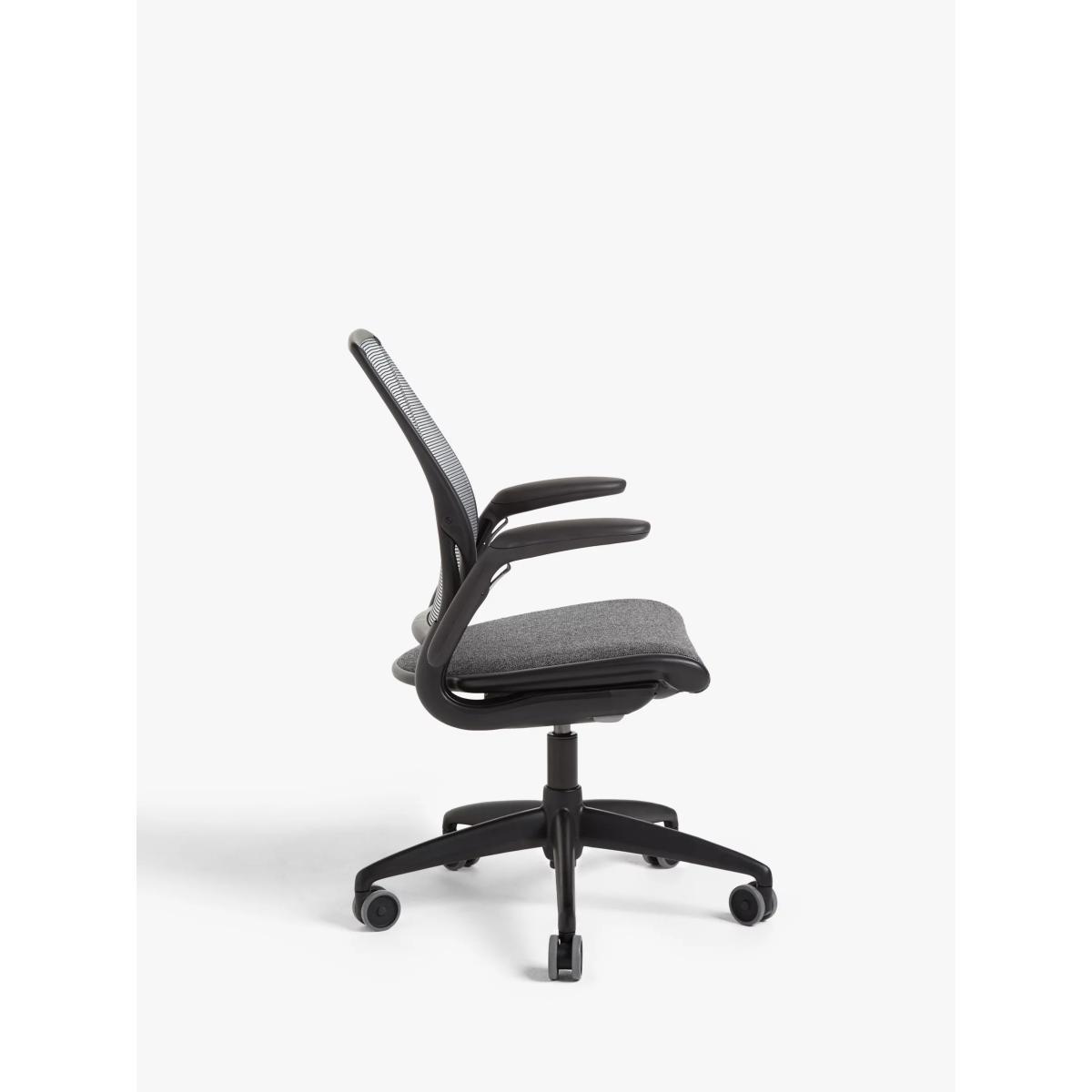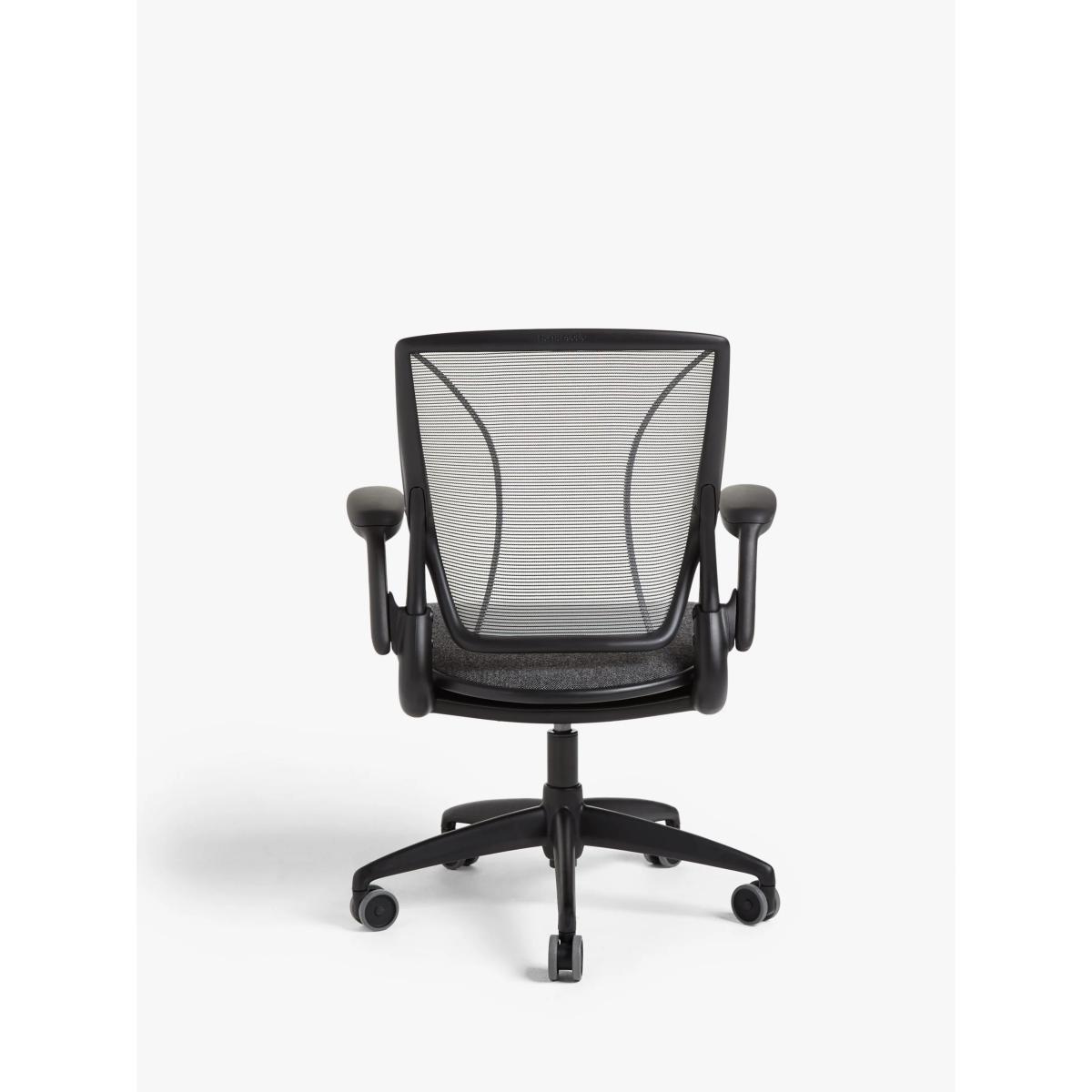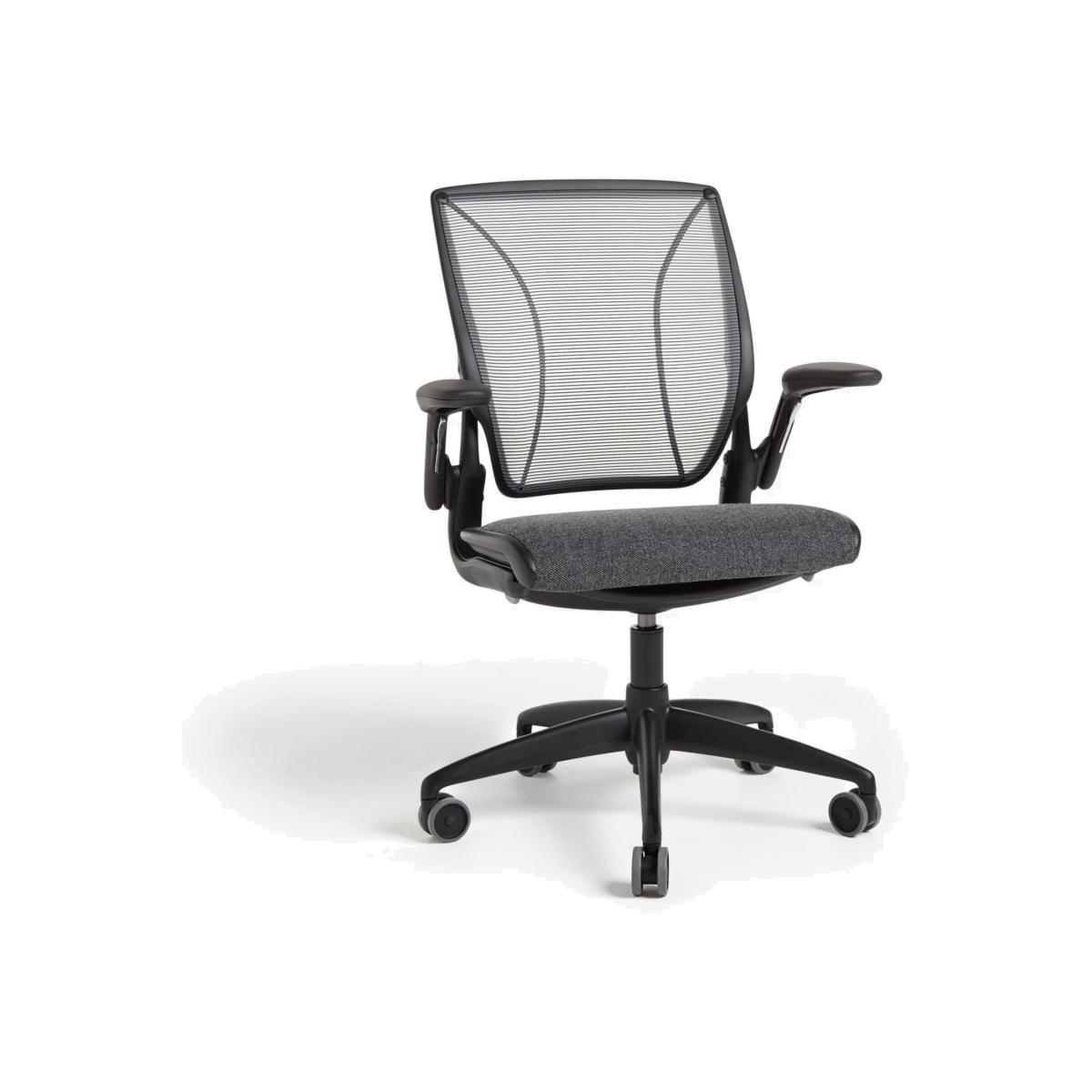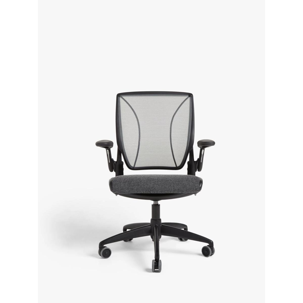 The Diffrient World Task office chair from Humanscale provides ergonomic support and comfort, in an innovative design that fuses functionality and style. Created by industrial designer Niels Diffrient, Camira is upholstered in two exclusive fabrics. This model is contract standard. Made from high-quality materials, its mesh backrest is designed with a weight-sensitive recline mechanism. It will automatically adjust to support each user at every recline position, moving with you to provide balanced, lumbar support throughout the working day. The tri-panel, non-stretch mesh removes the need for external lumbar support devices or manual controls, offering a flexible and comfortable feel. It also offers a full range of recline and adjust options, including the seat height, depth and armrest height. Each component is designed to work in tandem, for a completely smooth experience. Its sturdy metal base and castors allow you to glide easily across the room, without leaving marks on your flooring. Protect your floor While this chair is suitable for the flooring specified, we suggest using floor pads or mats where possible, for added protection to your flooring and furniture. Want to see it first? You may want to see and get a feel for the furniture in one of our shops before ordering. We'll be able to tell you where the range you'd like to view is on display.