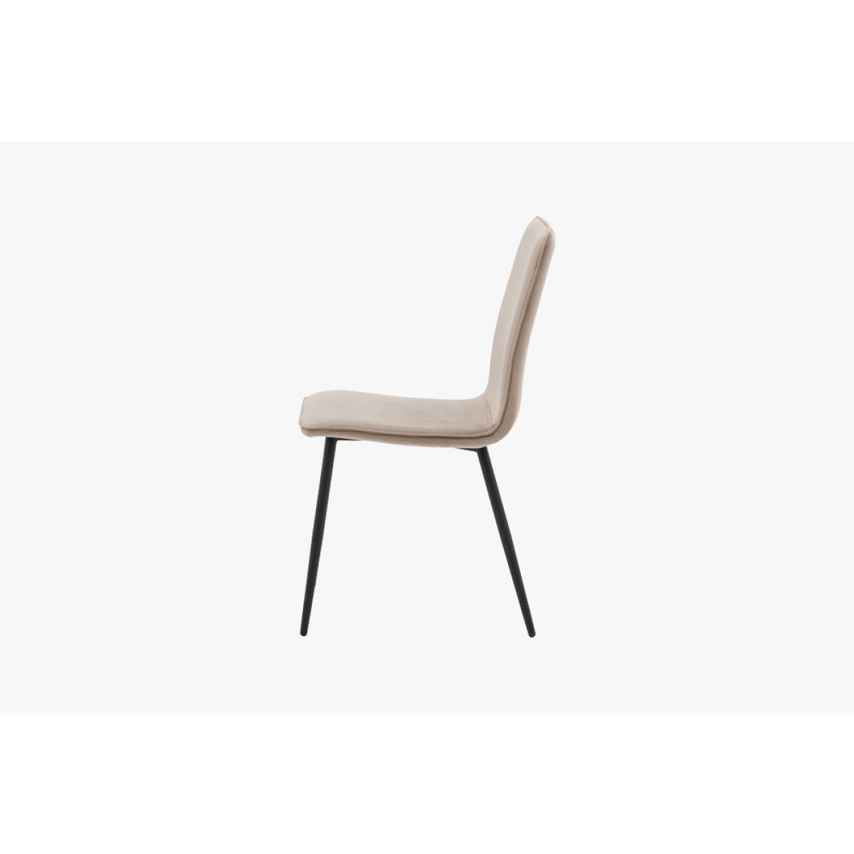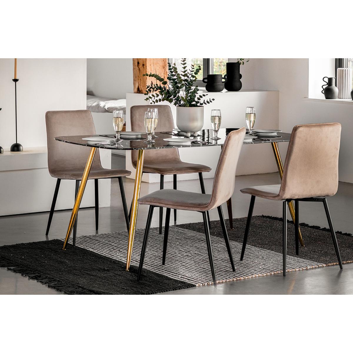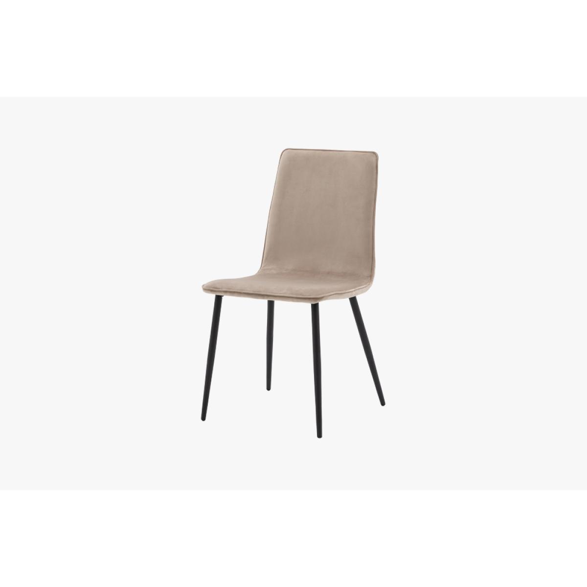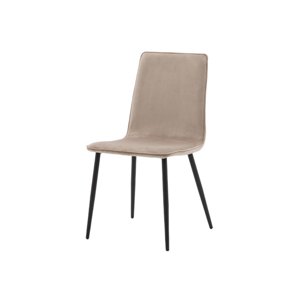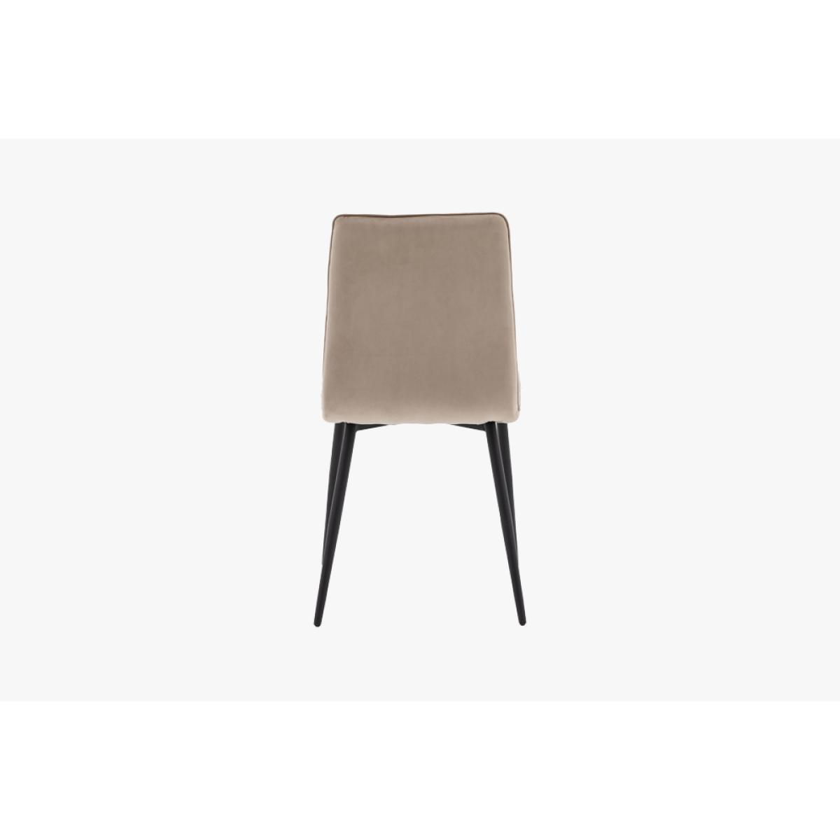 I’m a fan of these taupe dining chairs for their clean lines and muted hue, which slot seamlessly into modern, Scandinavian or industrial-style kitchens and dining rooms. The slim black metal legs keep them feeling light underfoot, while the softly upholstered seat brings just enough warmth without overpowering a neutral palette. To style, pair them with a simple oak or black-steel table and layer in contrasting textures - think a woollen runner or linen napkins - to add depth. They’re compact enough for smaller spaces, wipe-clean for busy households and easy to move around when you need extra seating.