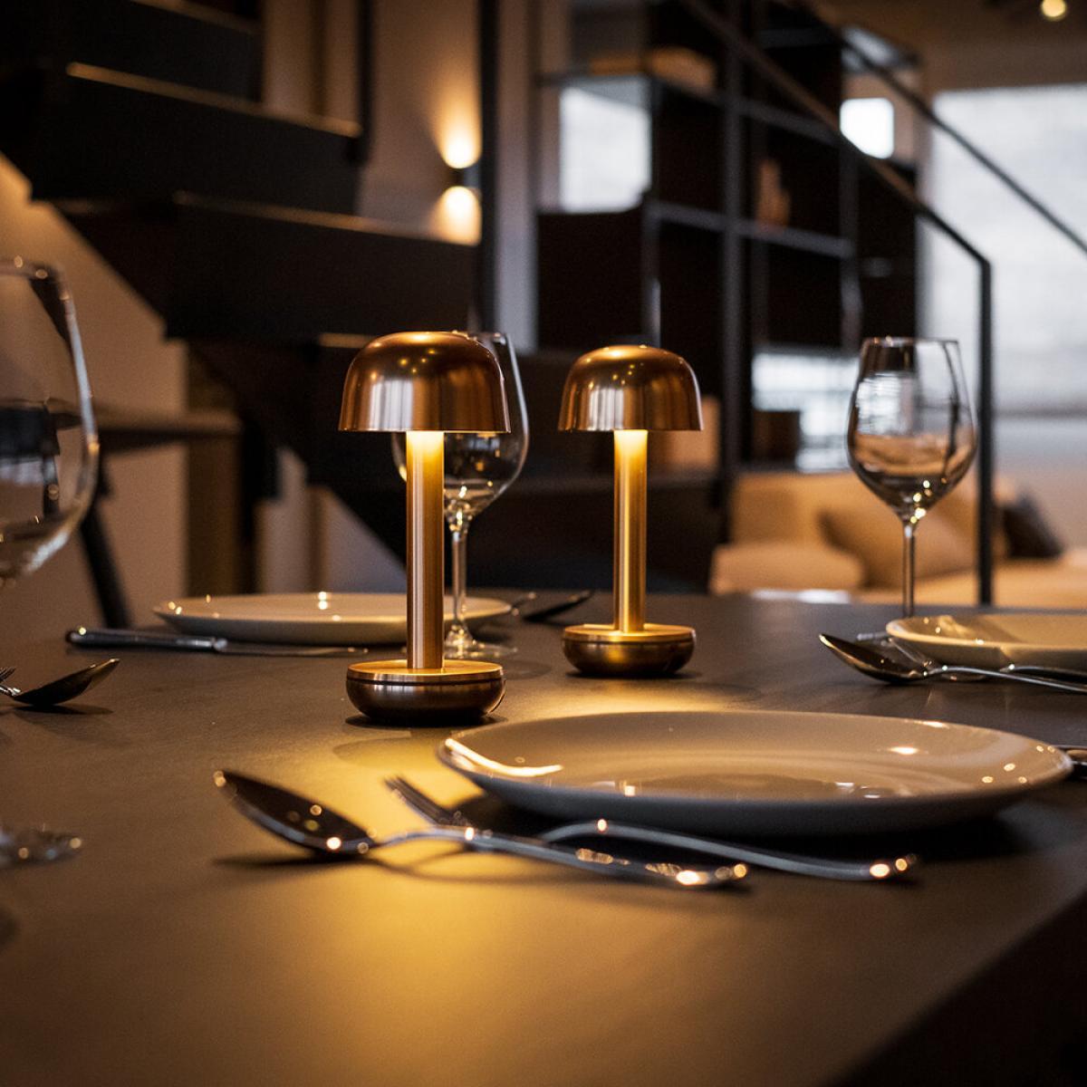 The Two table light from Humble will quickly become your favourite accessory. Portable, pretty, and personalised (you can choose from three different light settings to set the perfect mood), the domed shade makes it ideal for creating the right dinner party ambience or for placing in a cosy reading corner. Available in a selection of on-trend finishes, it'll blend in seamlessly with your scheme. Key features: * Material: aluminium, glass * Dimensions: Ø9xH21cm * Gold colour * LED filament * Up to 100 hours of battery life * 3 light settings (candle, ambient, work) * Charges wirelessly on any Qi standard charger or with included USB cable * Built to last - all main parts are available as spare parts