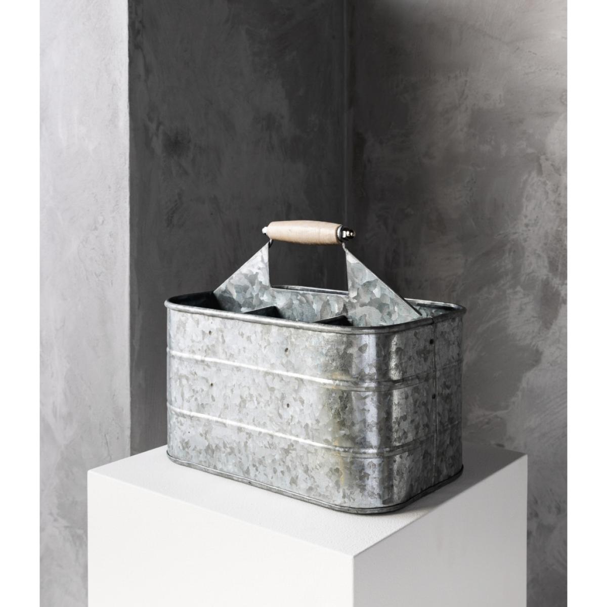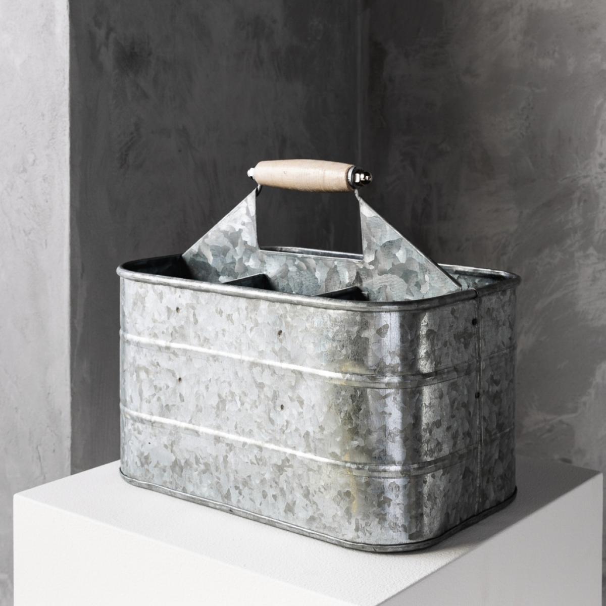 I love this tinned bucket for its industrial charm and versatility. Its simple, neutral tone makes it a perfect fit for both modern and rustic interiors, especially Scandinavian-style schemes that embrace natural textures. It works beautifully as a storage solution in kitchens, bathrooms, or utility rooms - great for organising cleaning supplies, utensils, or even toiletries. Practical styling tips include grouping it with other metal or wooden accessories for a cohesive look or using it as a standalone feature filled with fresh herbs, flowers, or colourful linens to add a touch of personality. Its sturdy construction also means it can double-up as a planter, offering many creative ways to incorporate it into various spaces.