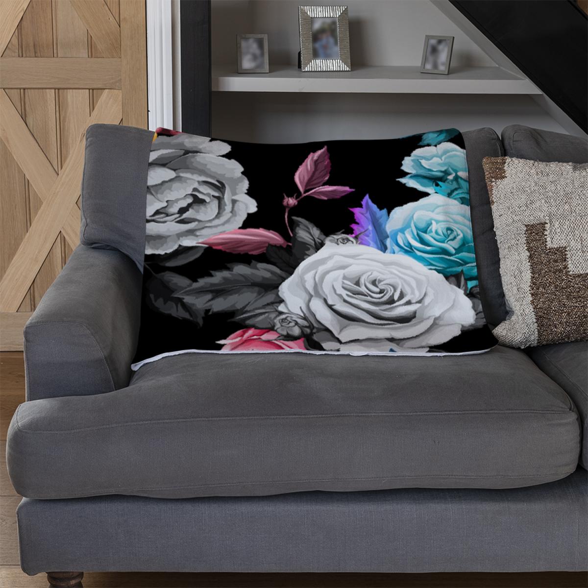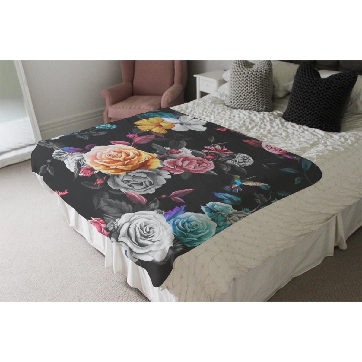 Humming Bird Roses Peony With Leaves Blanket - Black