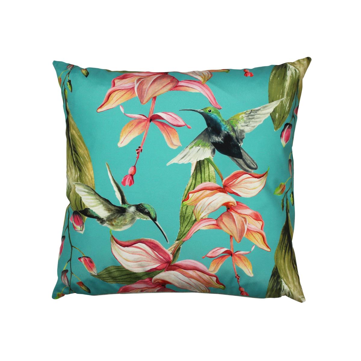 Featuring a duo of Hummingbirds surrounded by bright blooms on a vibrant Blue background. Add a pop of colour to your garden this summer. Featuring a delicate design of Hummingbirds and bright blooms, this cushion is the perfect accompaniment for that outdoor experience.