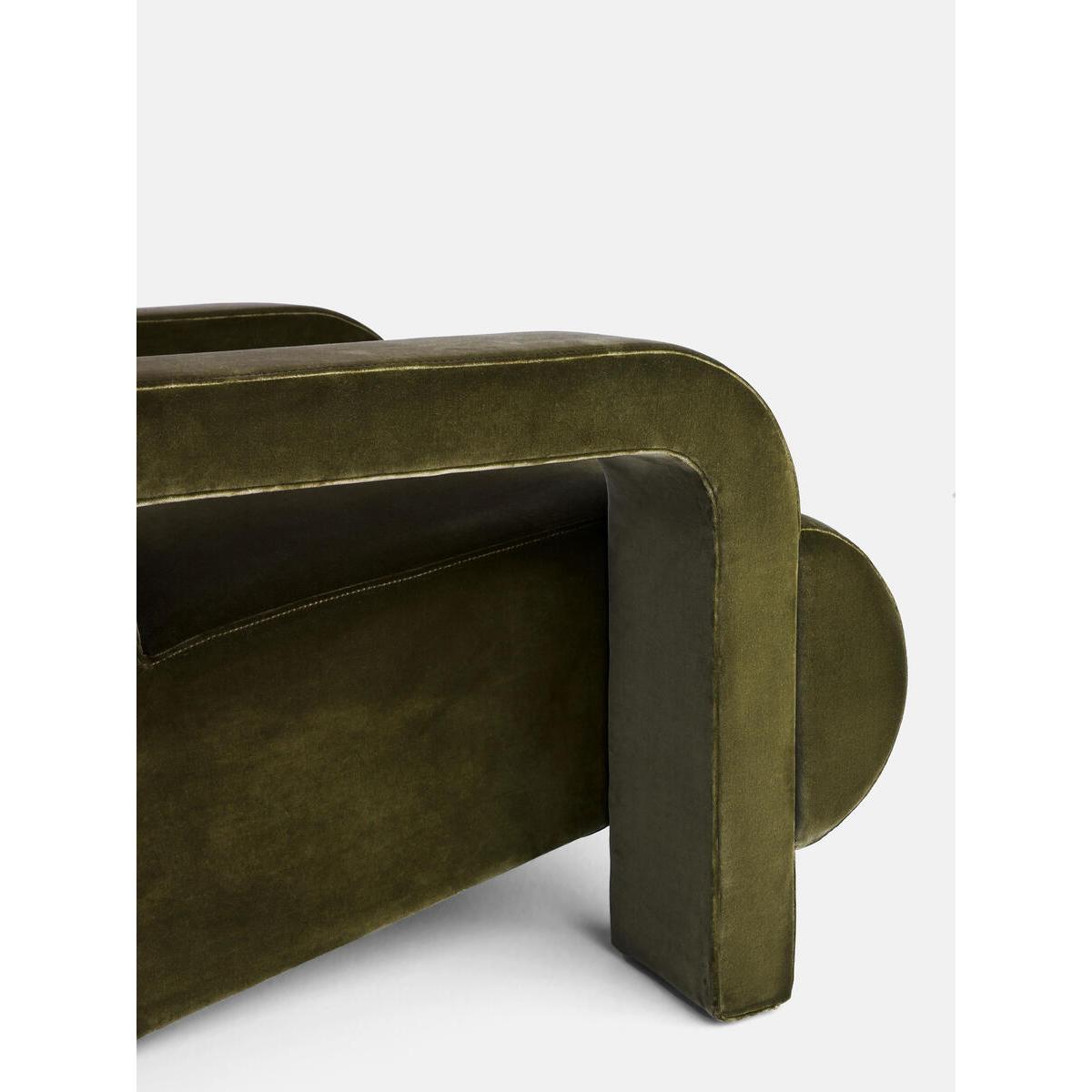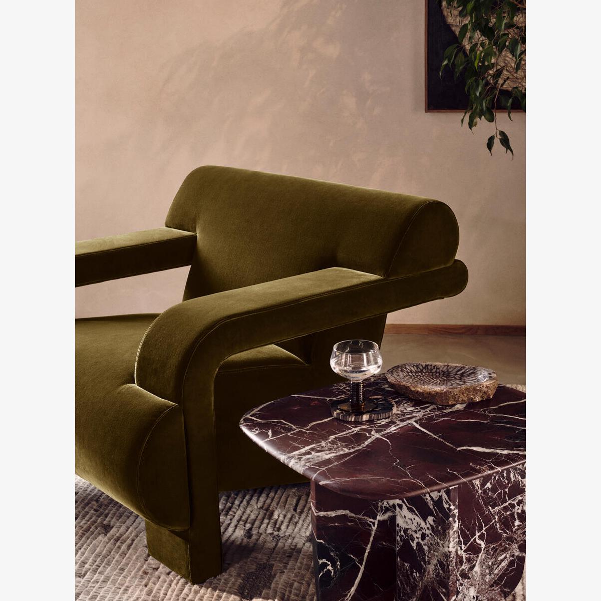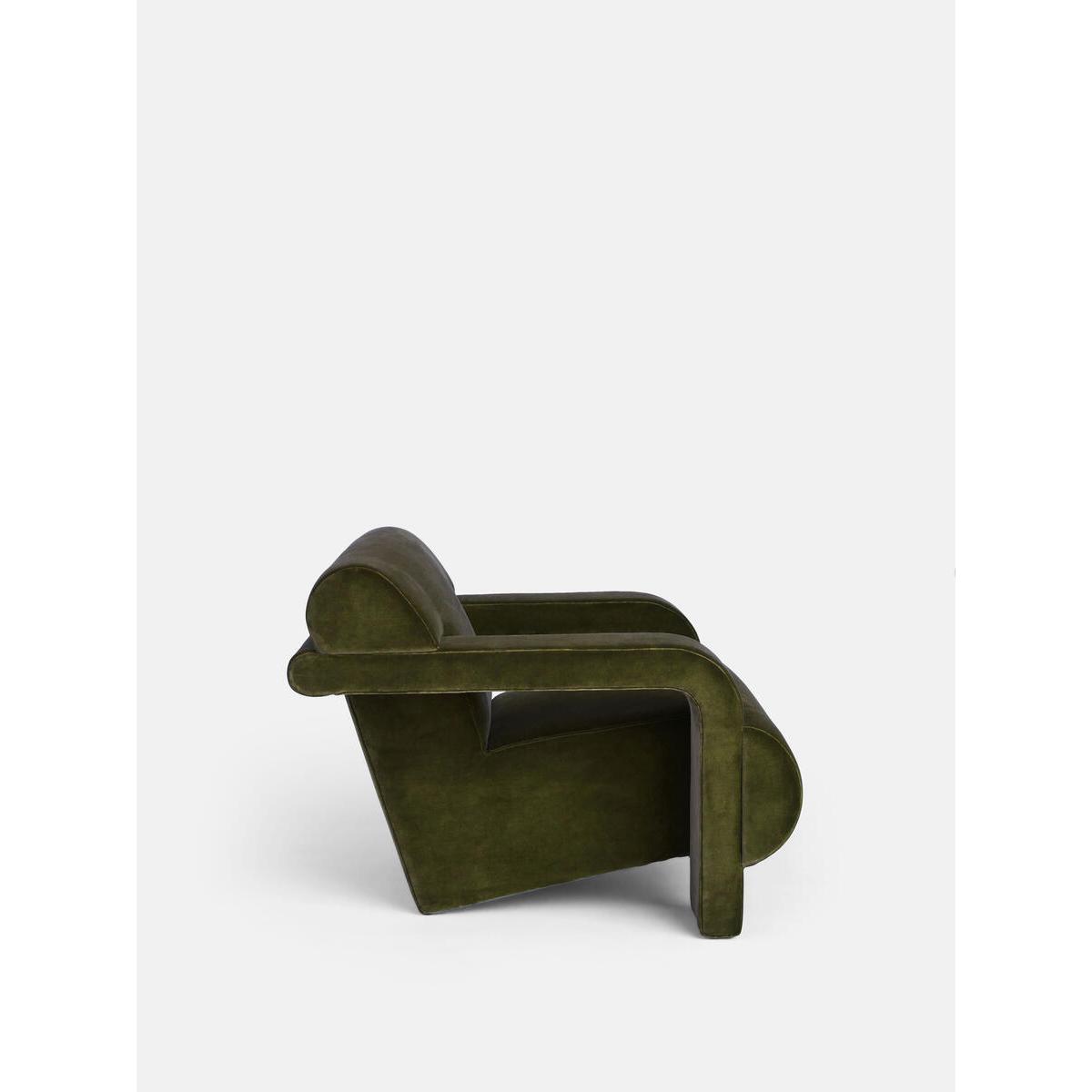 The sculptural formation of our Humphrey armchair is designed to create a stand-alone statement in your living space, while echoing the interiors of Soho House Rome. Upholstered in olive green velvet, place in a corner of the living room and sink into its undulating curves. Statement armchair Sculptural formation Upholstered in olive cotton velvet Inspired by Soho House Rome